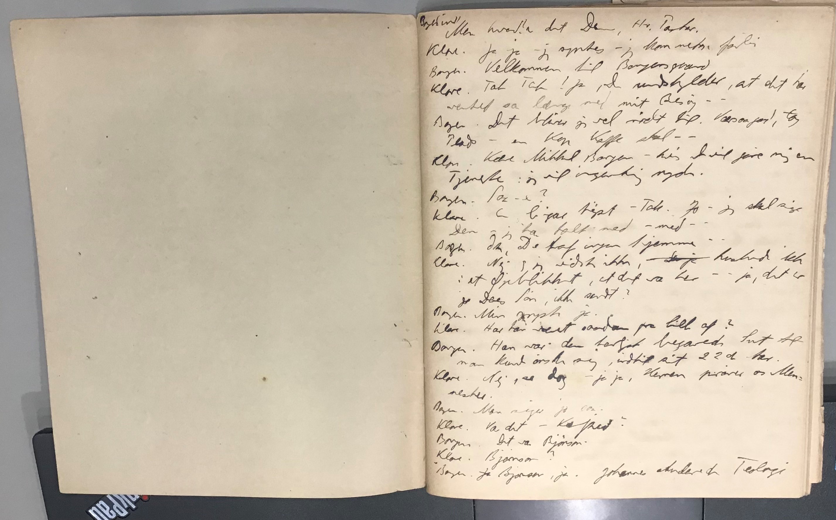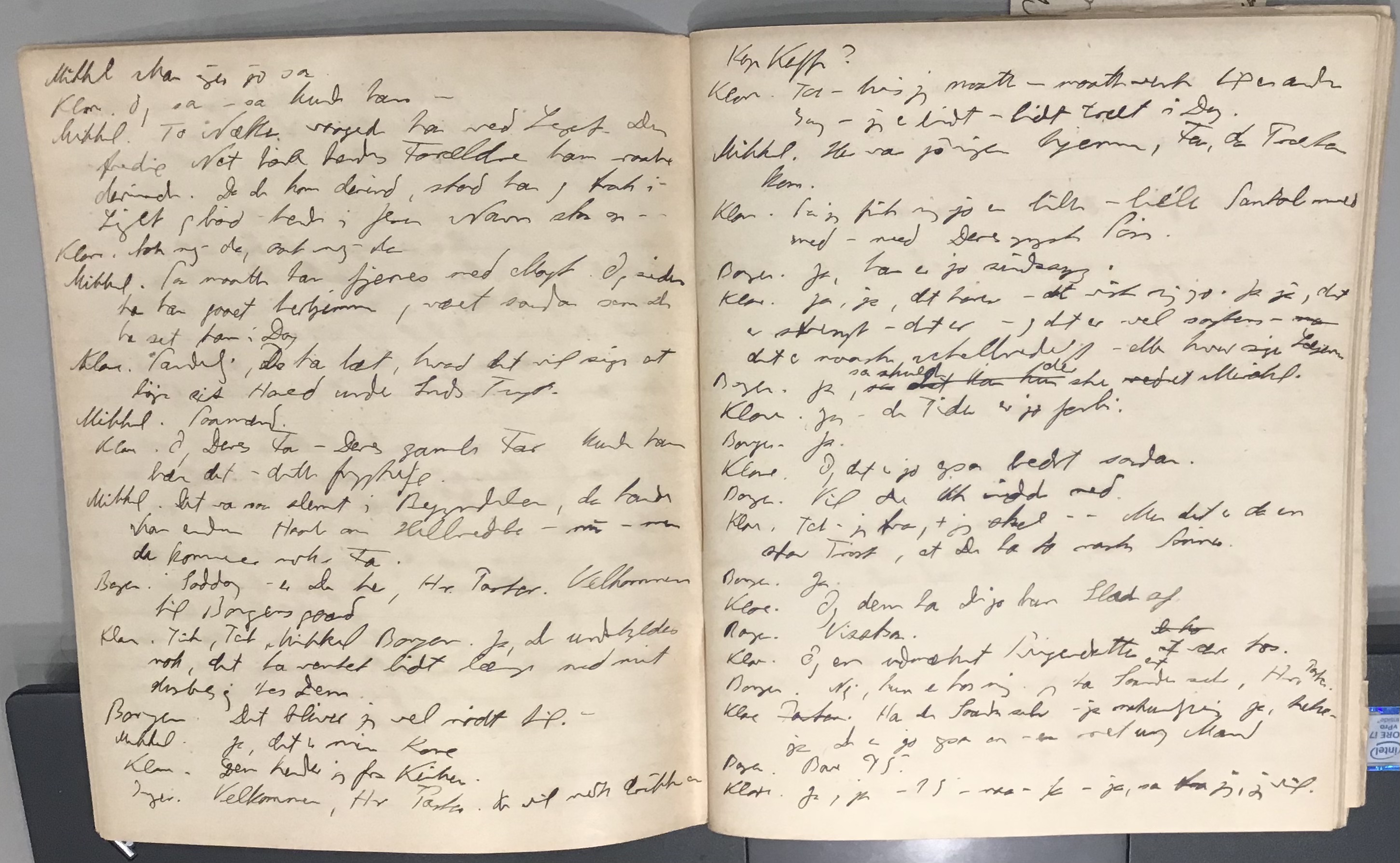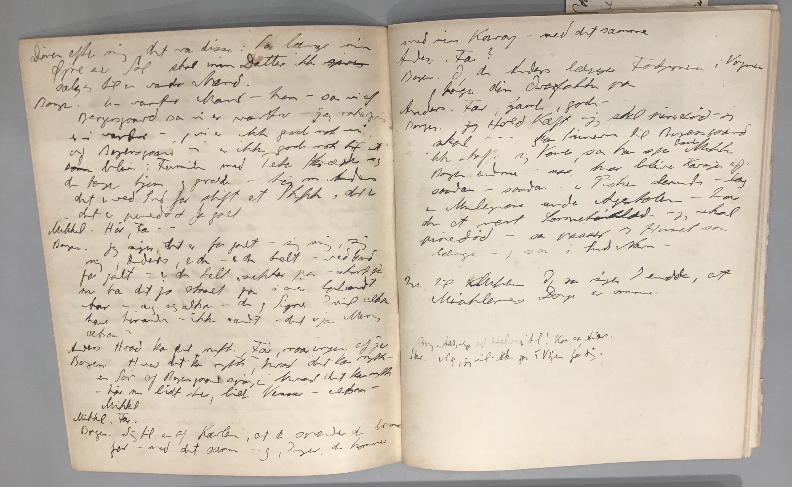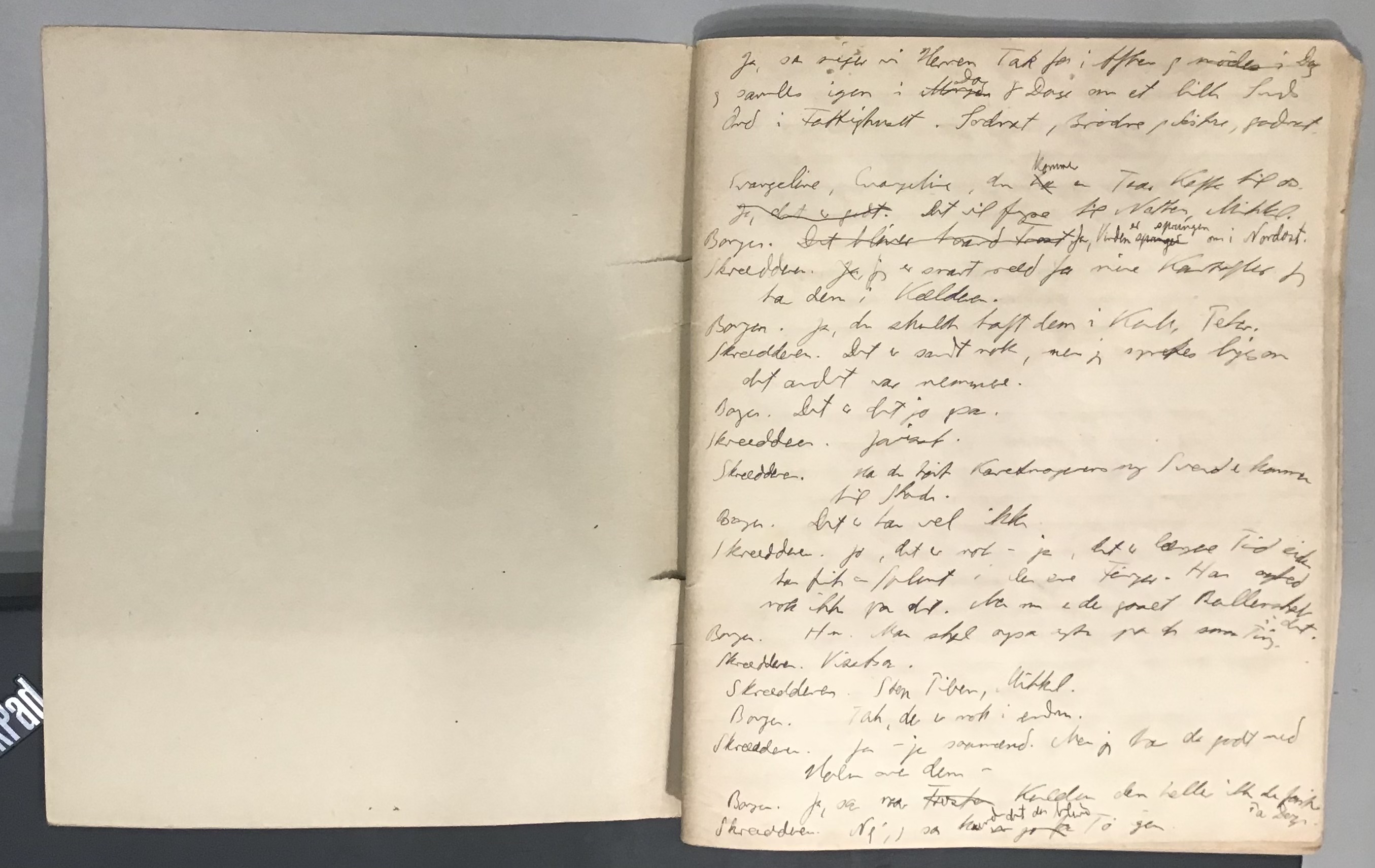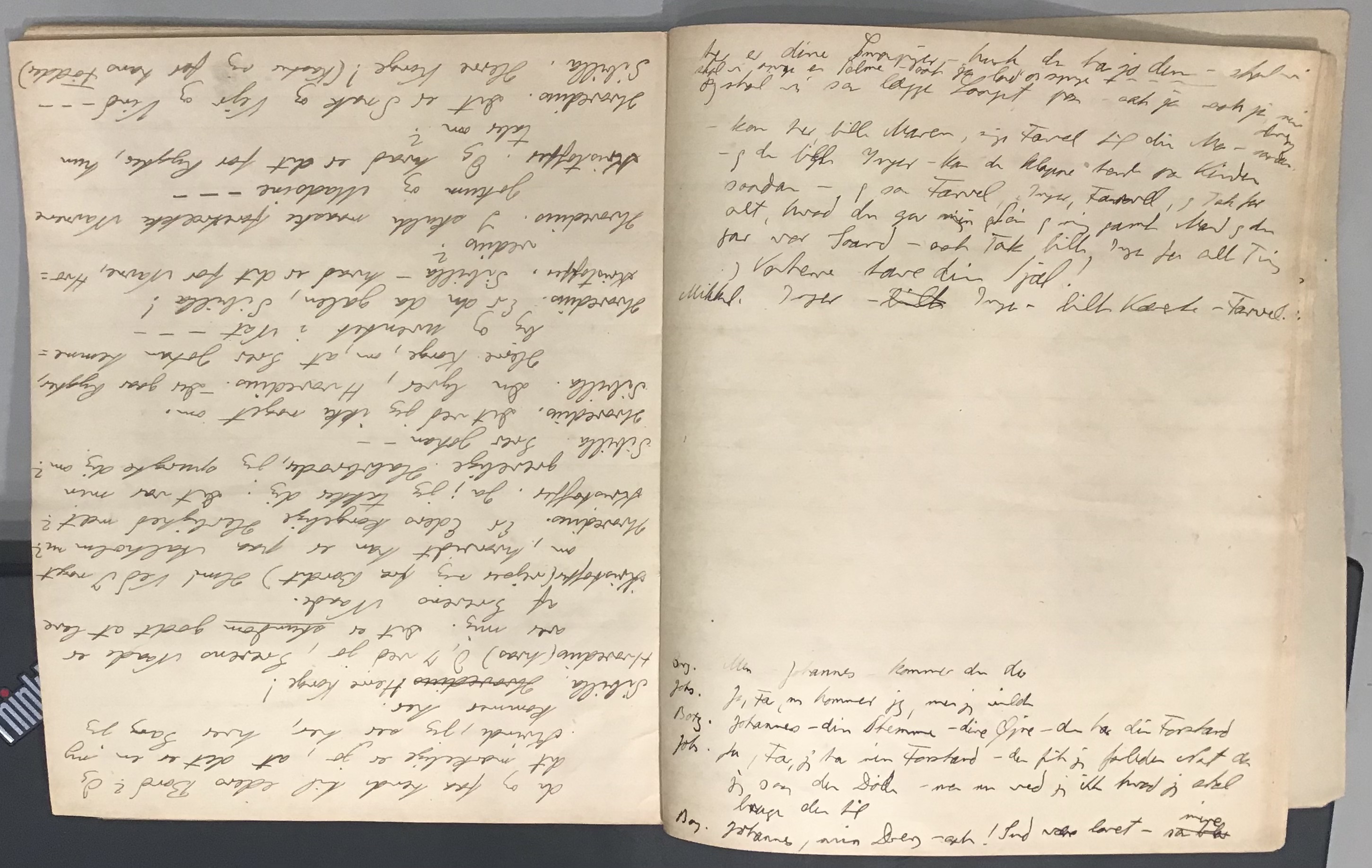 Indskrivning af Kaj Munks håndskrevne manuskript, som findes i to kladdehæfter på Det kgl. Bibliotek (opstillingssignatur UT354), tilegnet Hans Brix i anledning af dennes 70-års fødselsdag 1940. Kladdehæfterne er oprindeligt brugt til at skrive manuskriptet til skuespillet Kristoffer (1918/1919). Første Udkast til "Ordet" er skrevet på dette manuskripts bagsider. Manuskriptet fremstår meget fragmentarisk og består af en række løse scener, som her er søgt organiseret i forhold til kronologien og kompositionen i den endelige udgivelse af Ordet fra 1932.
