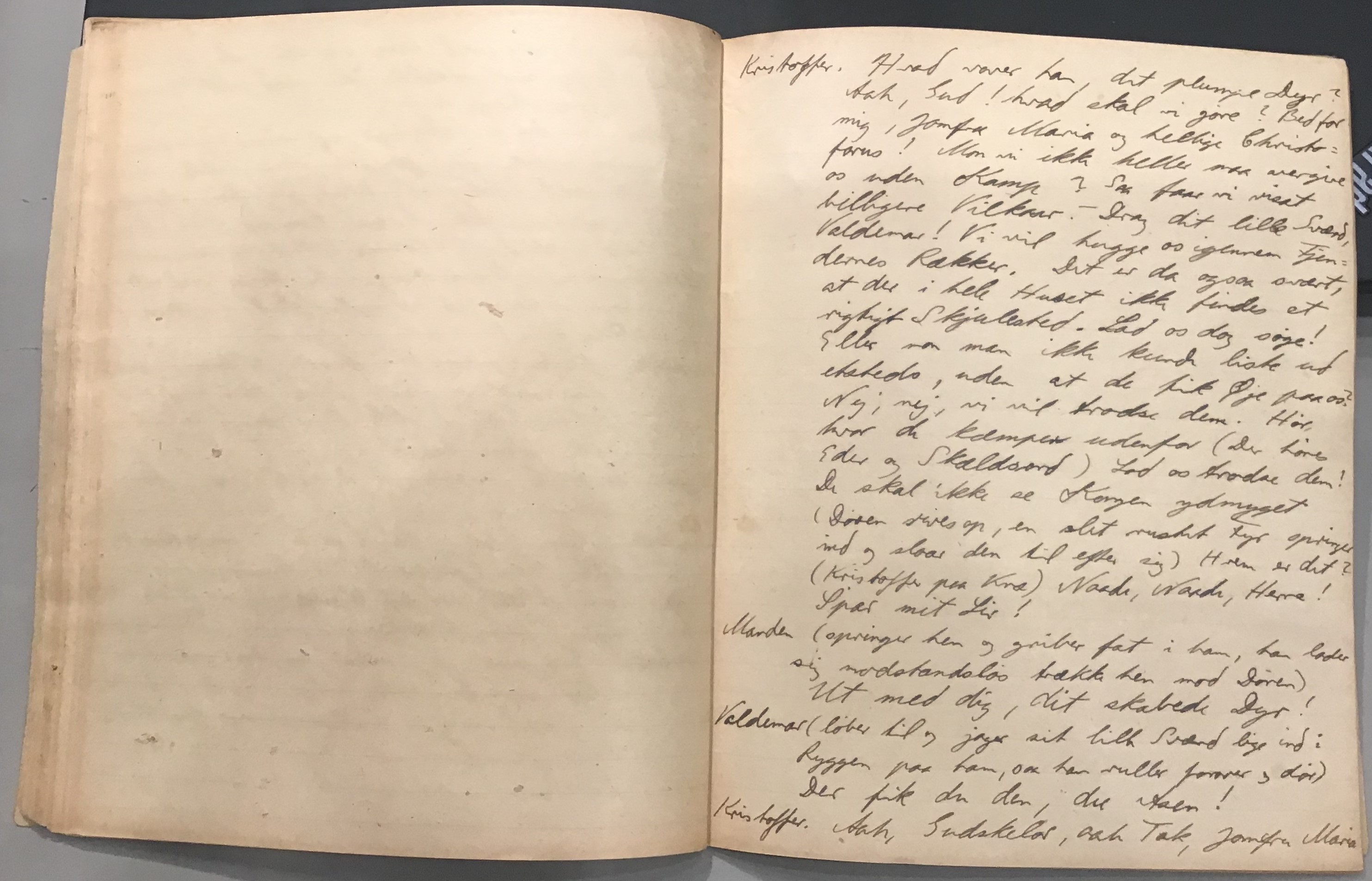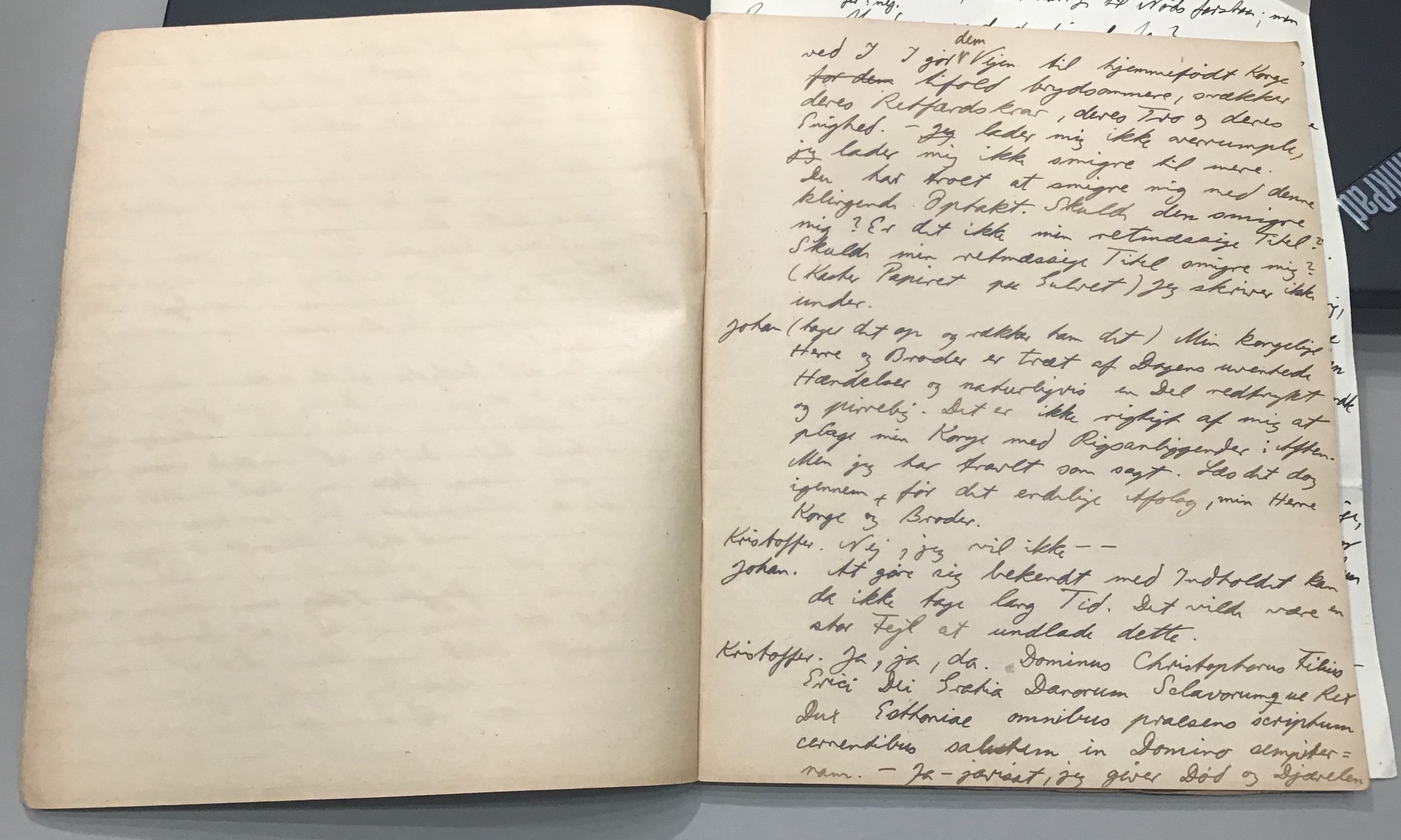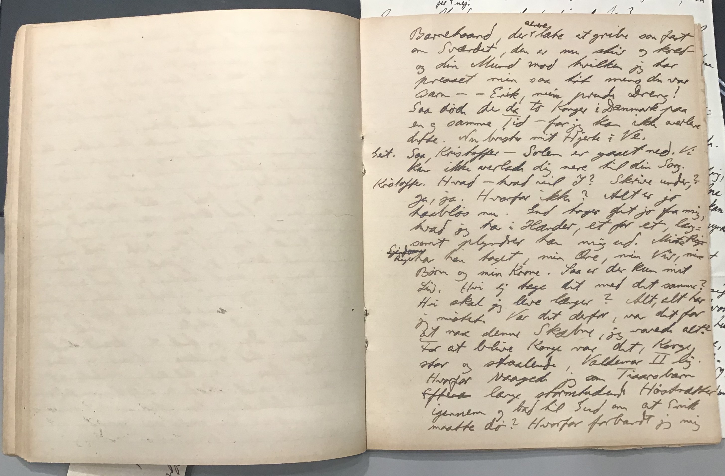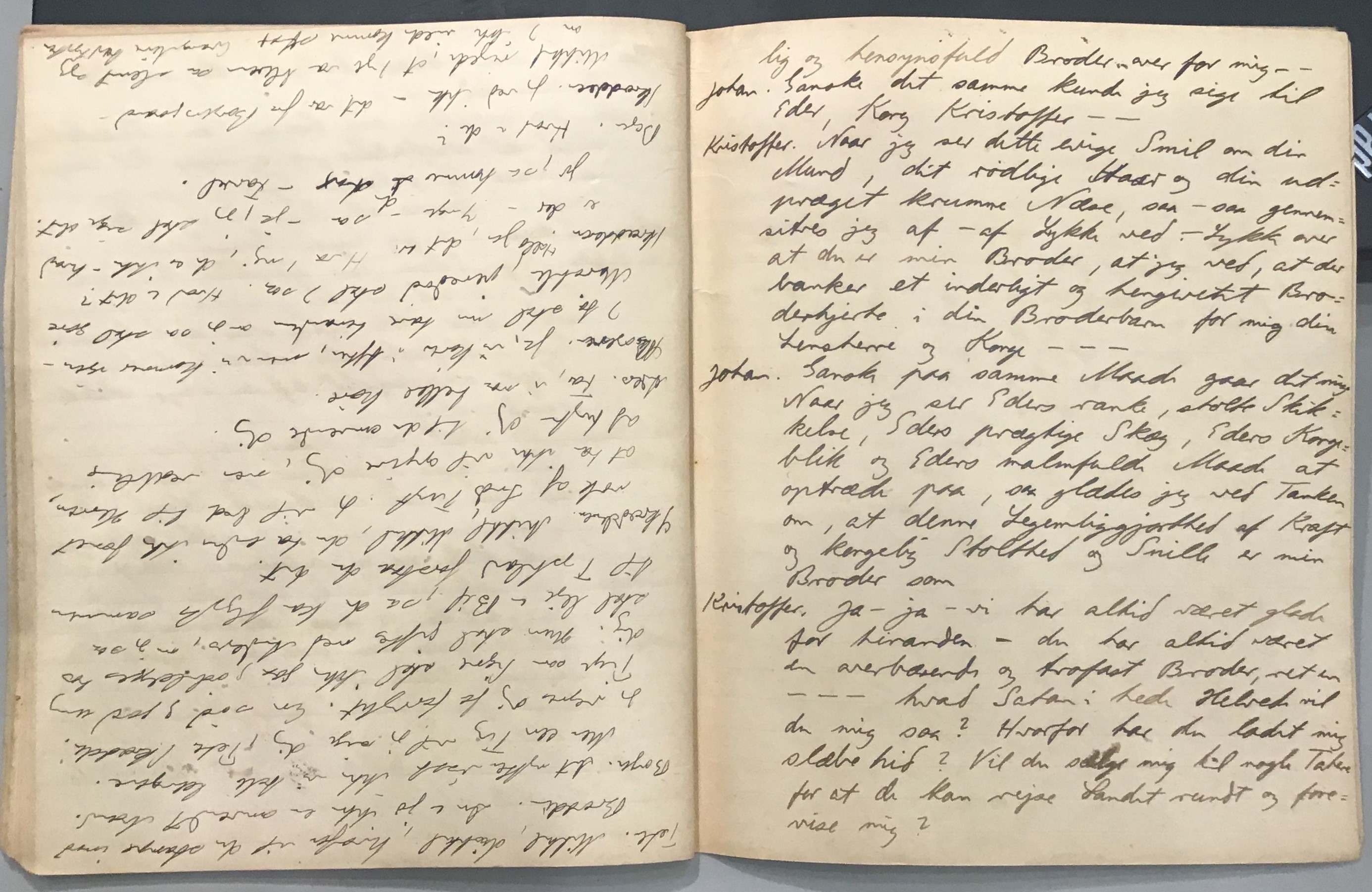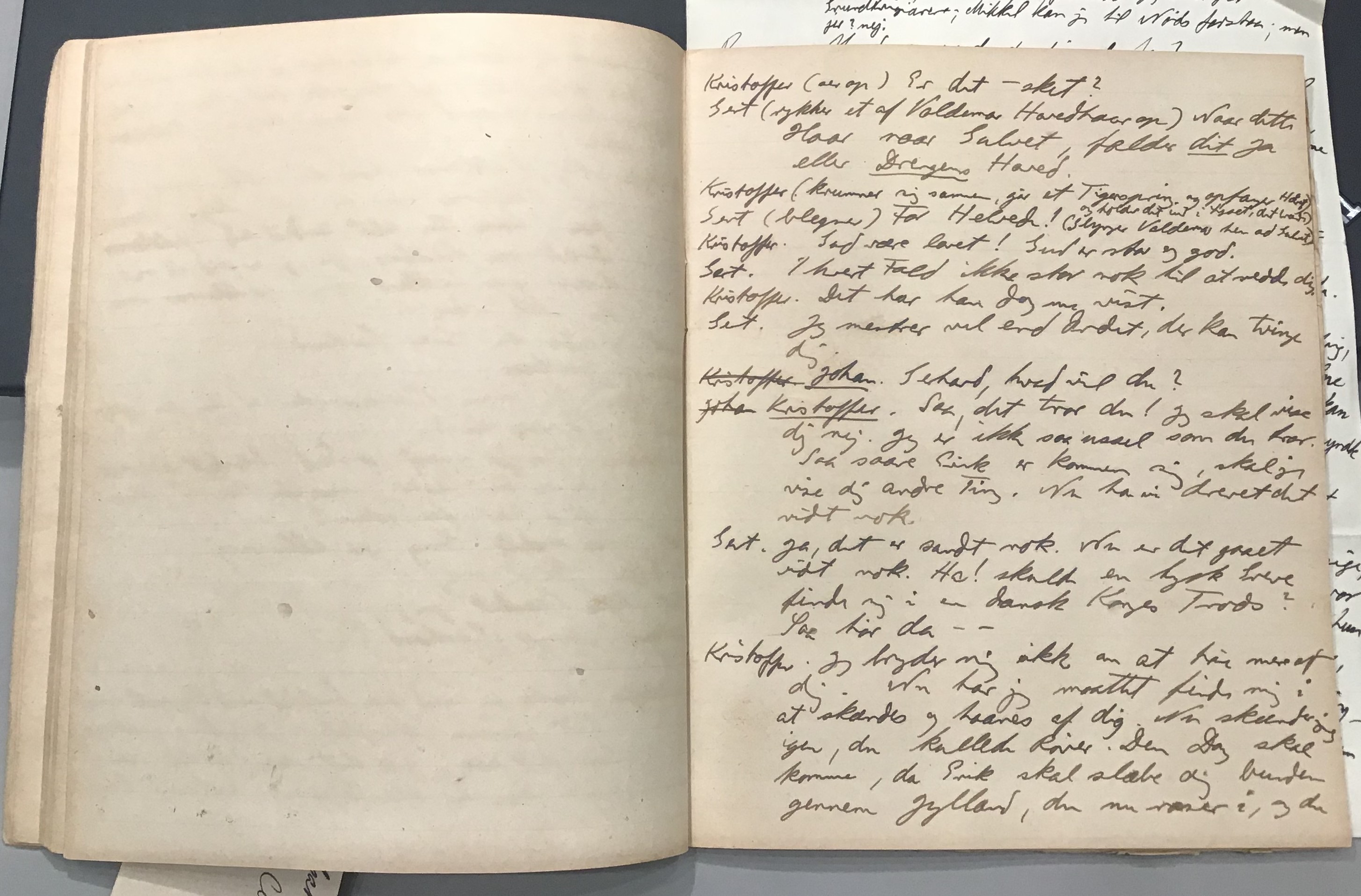 Kristoffer blev skrevet i 1918 eller 1919, det første eller andet år, Kaj Munk var student, men flere år senere, kort efter, at han havde begyndt sin præstegerning i Vedersø og var så fattig, at han måtte være sparsom med sit papirforbrug, skrev han det allerførste udkast til skuespillet Ordet på manuskriptets bagsider. Han genfandt det i begyndelsen af 1940, og da han var blevet bedt om at skrive en enakter, bestemte han sig for at korte de oprindelige to akter ned til en eneste. Resultatet blev skuespillet Atterdag (1940). Kilden (to håndskrevne hæfter, hvor også et håndskrevet udkast til skuespillet, Ordet, er skrevet på hver anden side) findes i Hans Brix's arkiv på Det kgl. Bibliotek. Diverse små bogmærker med kommentarer kommer i den rækkefølge, de er anbragt i i hæfterne. Disse er ikke transskriberet.