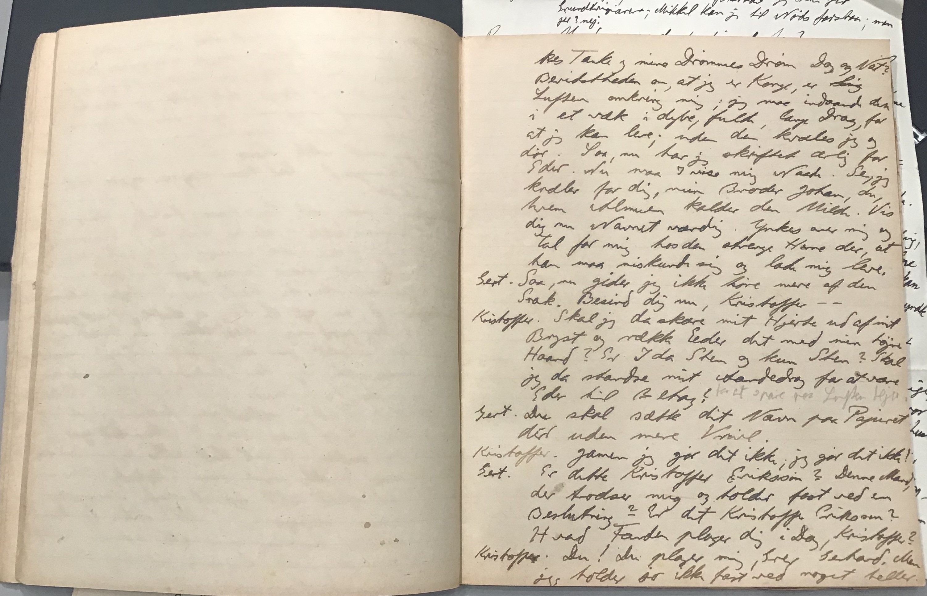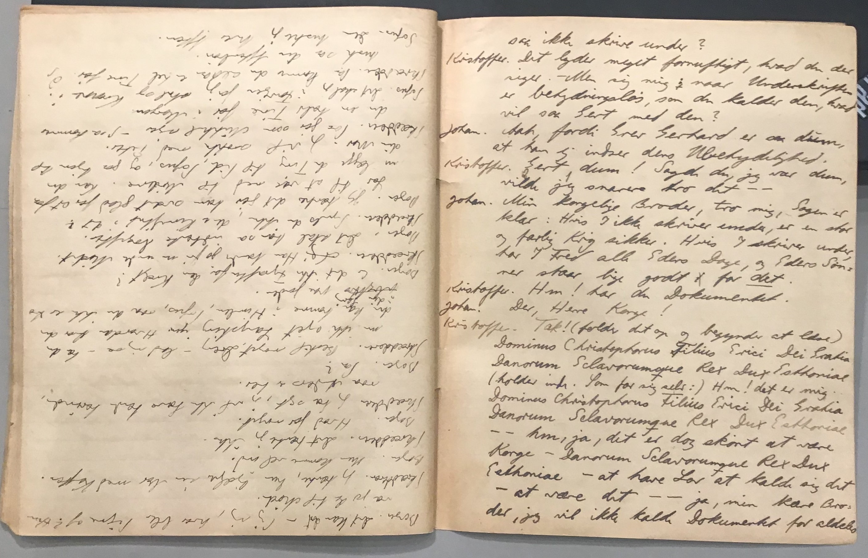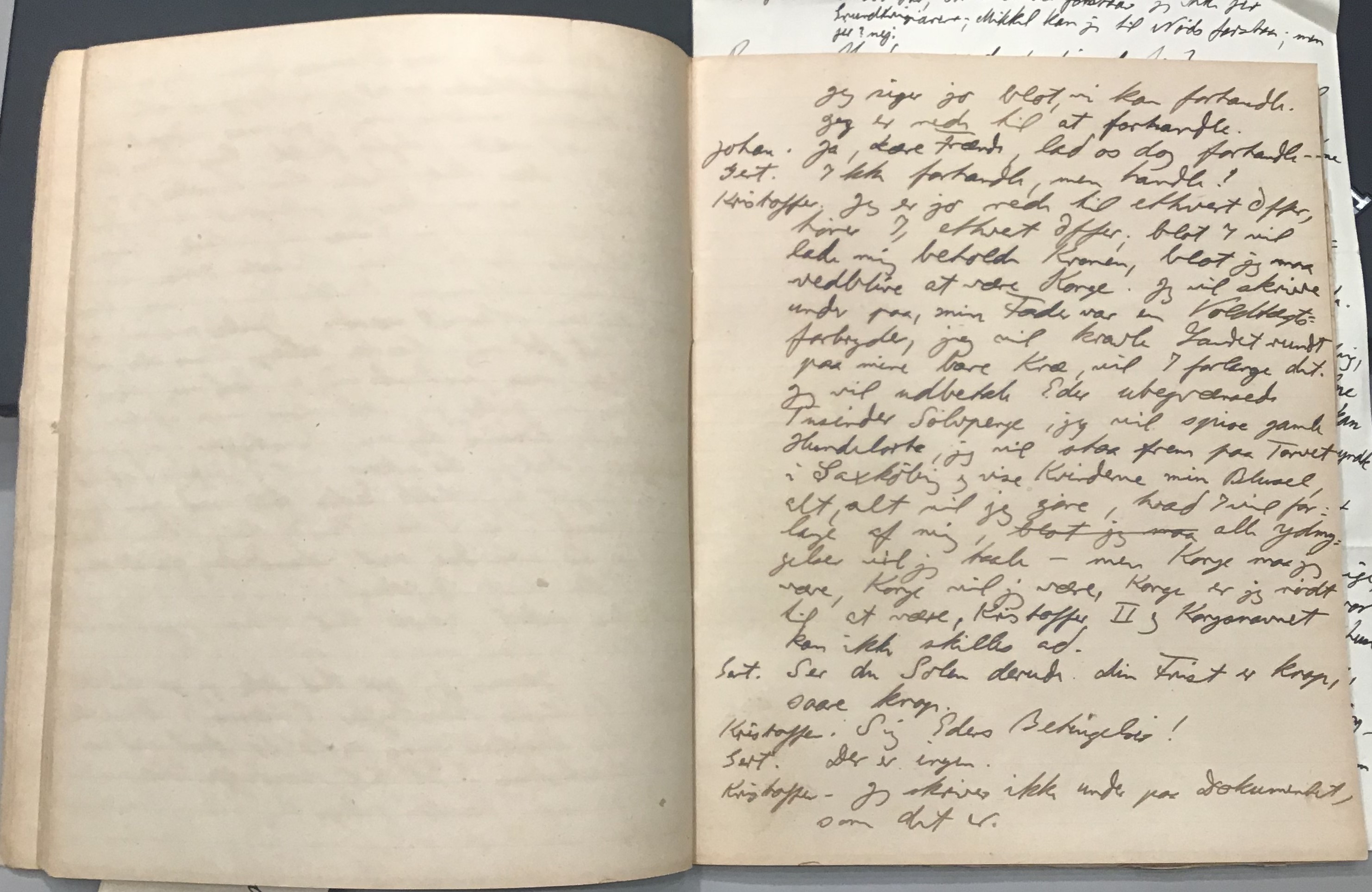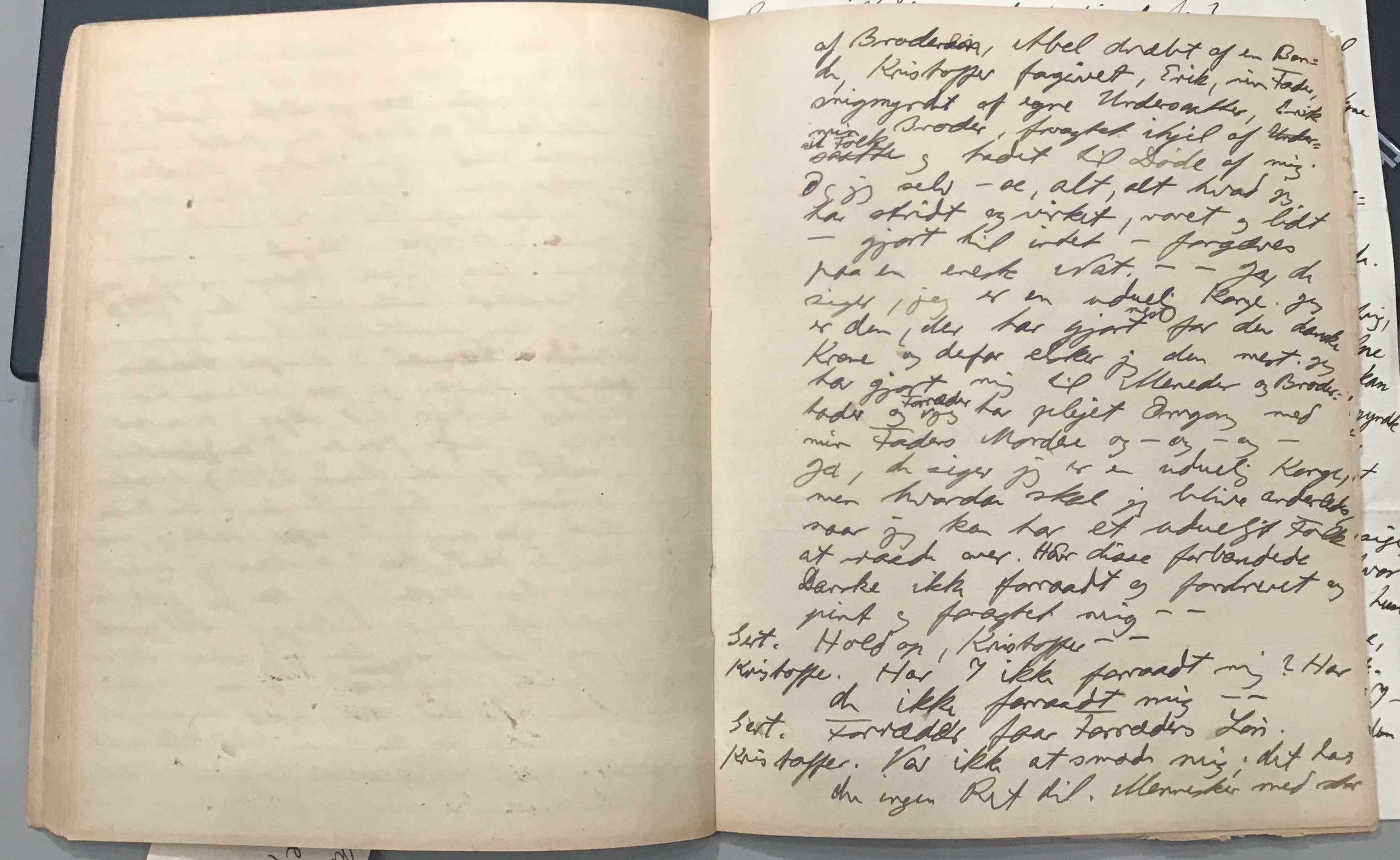 Kristoffer blev skrevet i 1918 eller 1919, det første eller andet år, Kaj Munk var student, men flere år senere, kort efter, at han havde begyndt sin præstegerning i Vedersø og var så fattig, at han måtte være sparsom med sit papirforbrug, skrev han det allerførste udkast til skuespillet Ordet på manuskriptets bagsider. Han genfandt det i begyndelsen af 1940, og da han var blevet bedt om at skrive en enakter, bestemte han sig for at korte de oprindelige to akter ned til en eneste. Resultatet blev skuespillet Atterdag (1940). Kilden (to håndskrevne hæfter, hvor også et håndskrevet udkast til skuespillet, Ordet, er skrevet på hver anden side) findes i Hans Brix's arkiv på Det kgl. Bibliotek. Diverse små bogmærker med kommentarer kommer i den rækkefølge, de er anbragt i i hæfterne. Disse er ikke transskriberet.