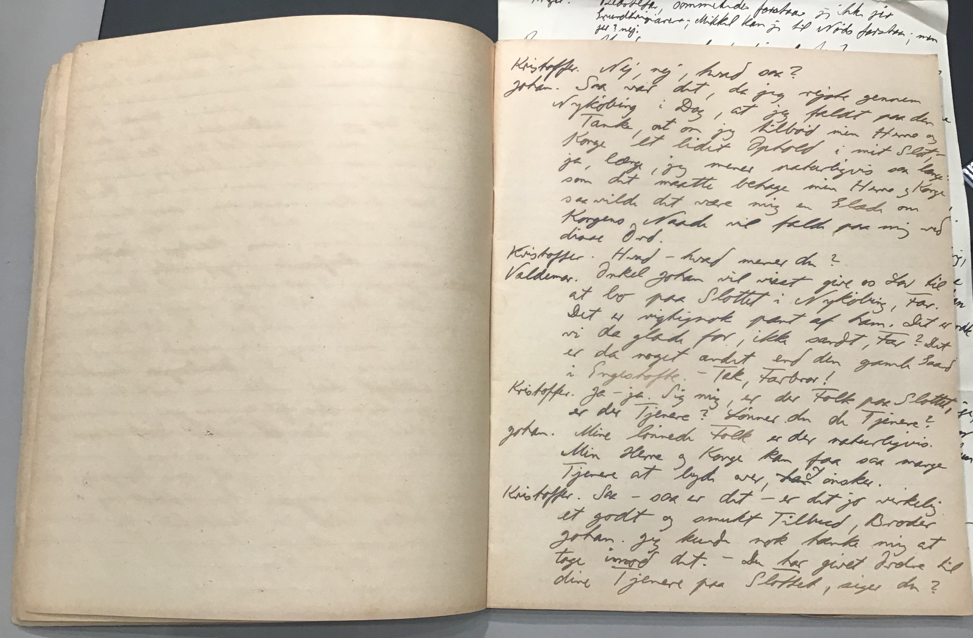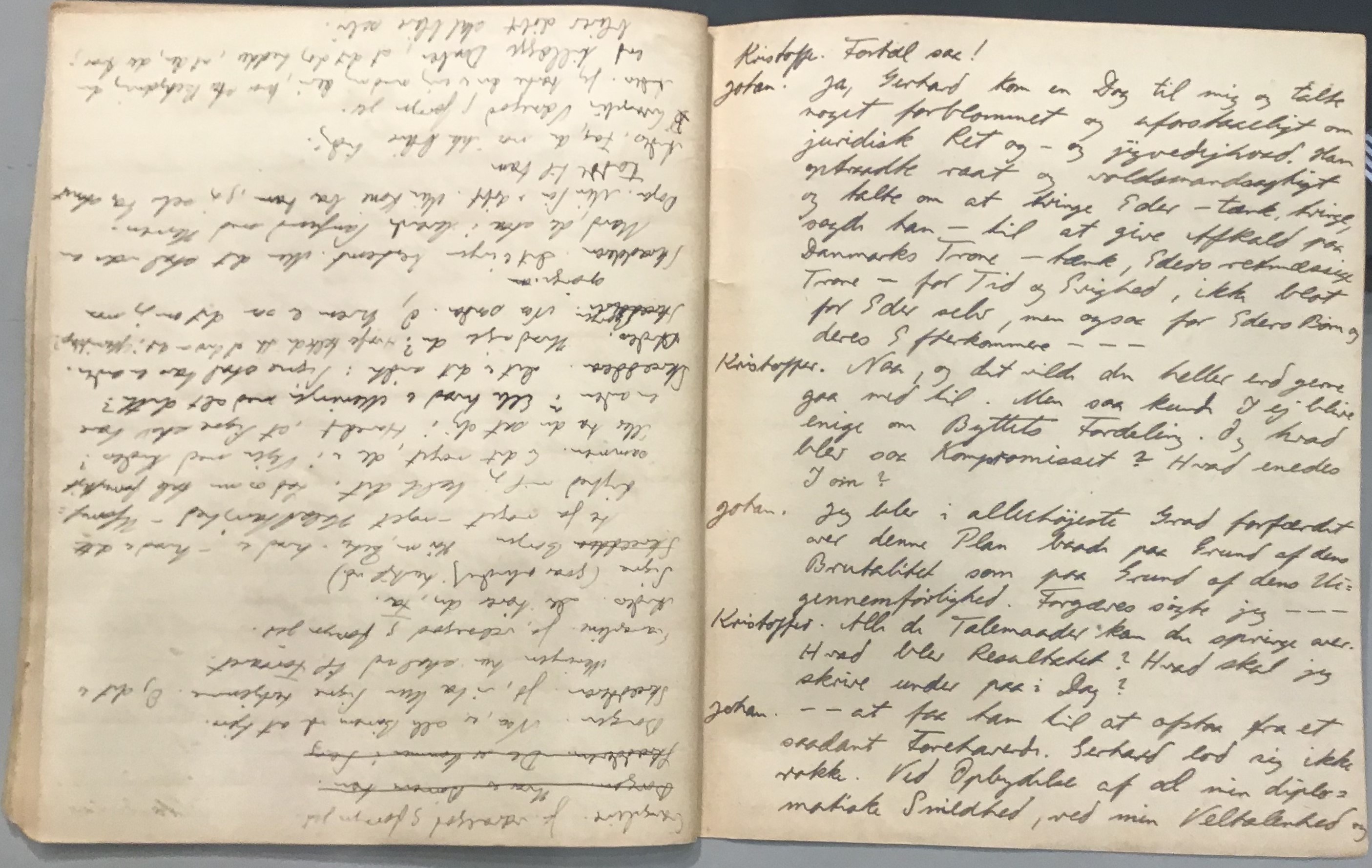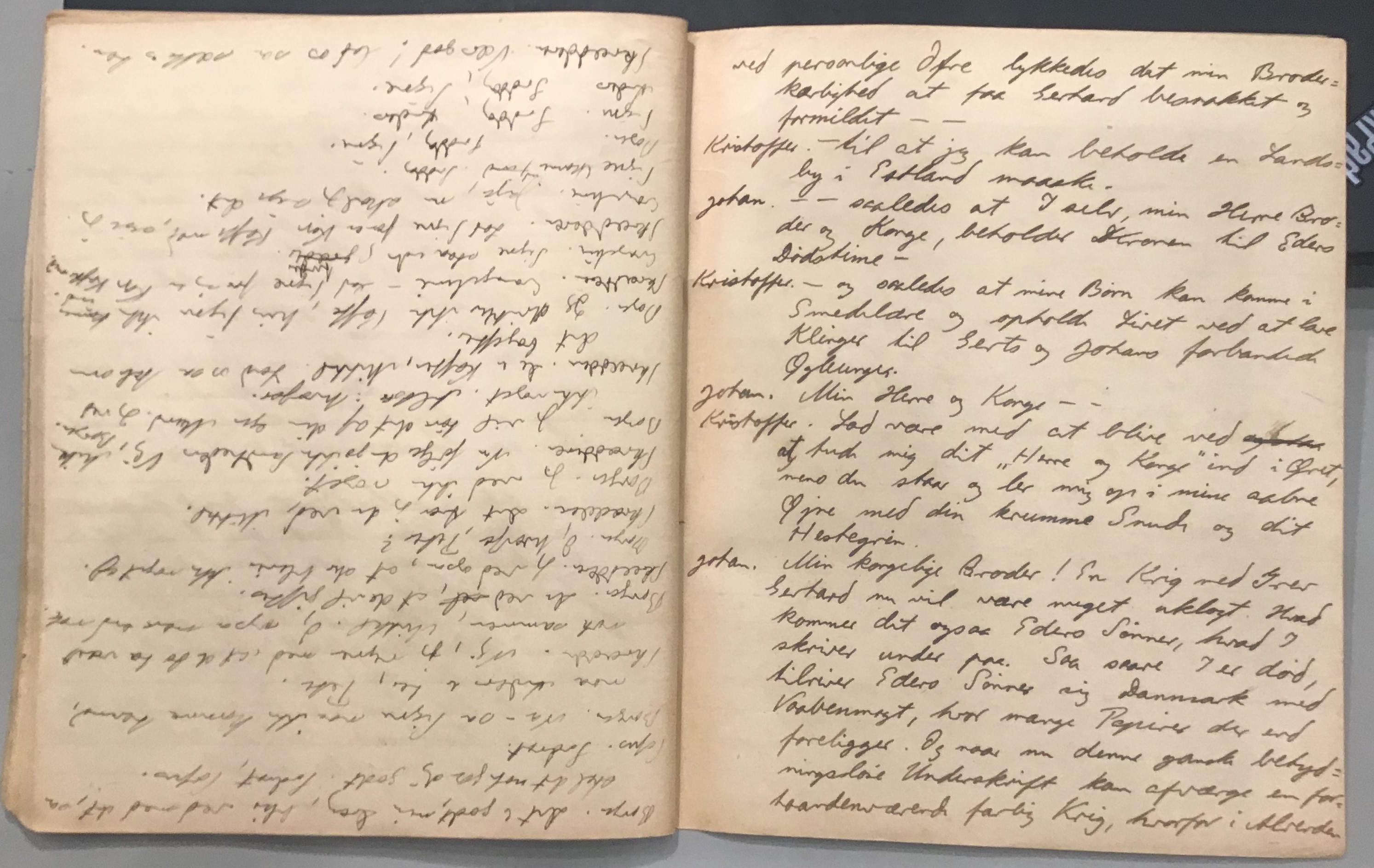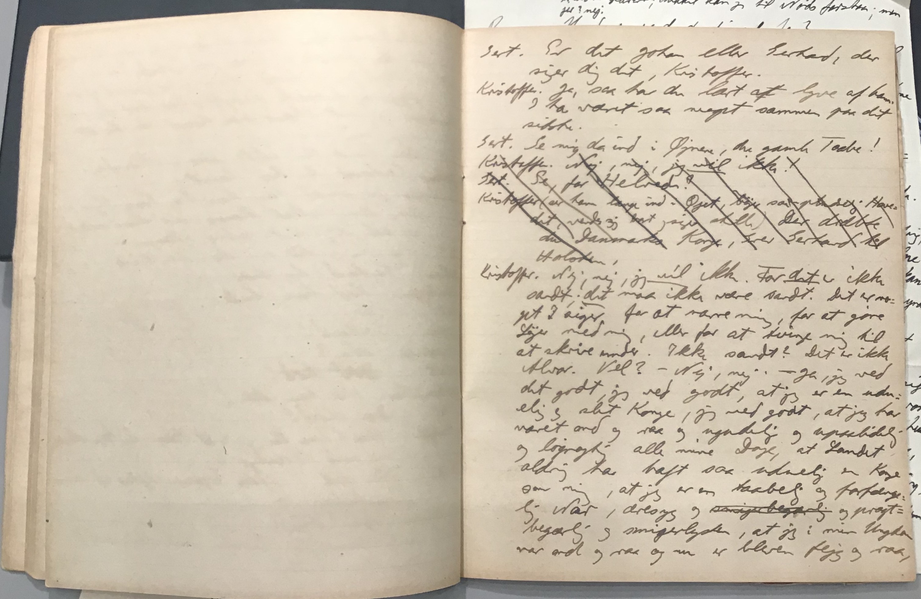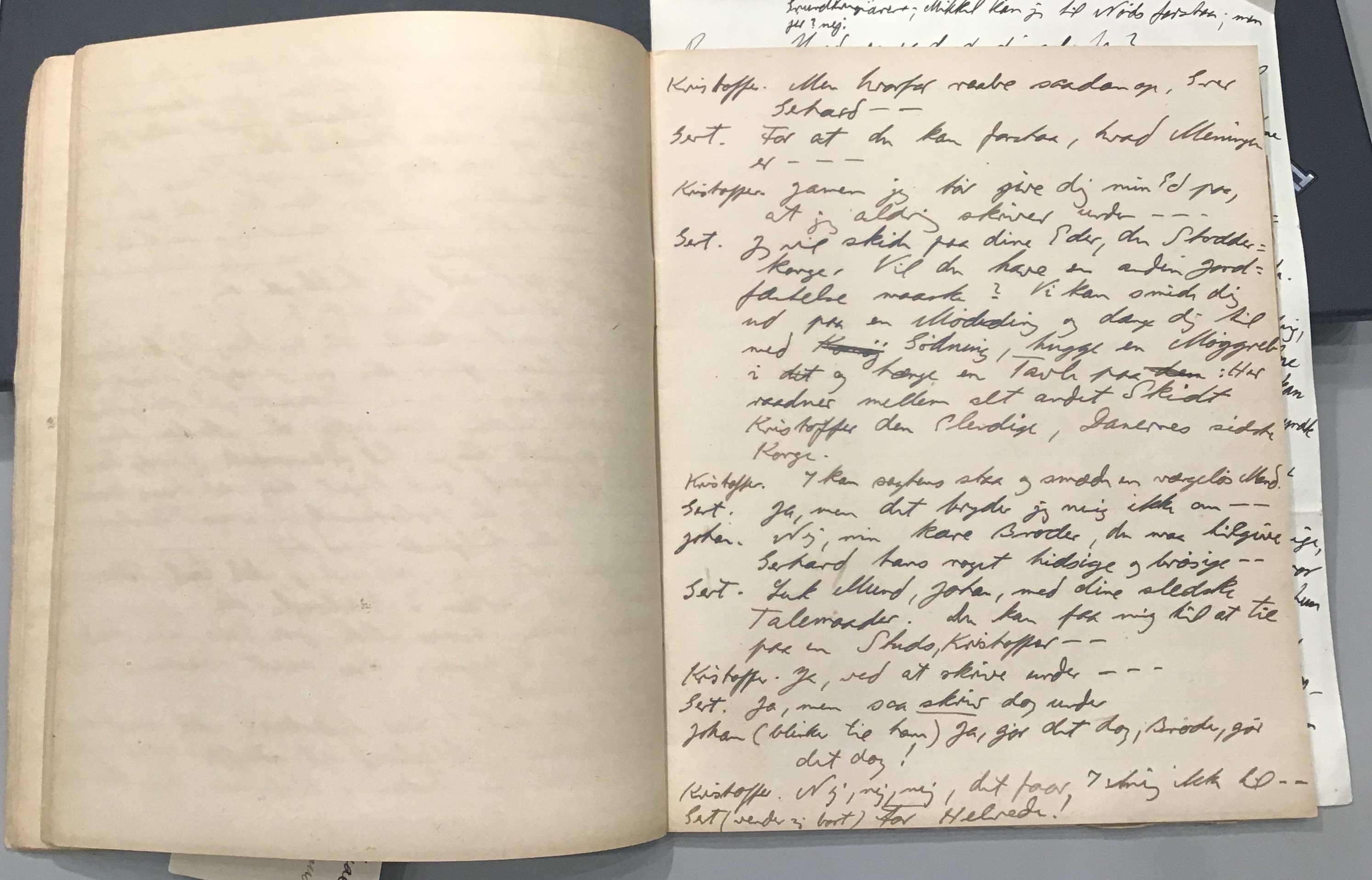 Kristoffer blev skrevet i 1918 eller 1919, det første eller andet år, Kaj Munk var student, men flere år senere, kort efter, at han havde begyndt sin præstegerning i Vedersø og var så fattig, at han måtte være sparsom med sit papirforbrug, skrev han det allerførste udkast til skuespillet Ordet på manuskriptets bagsider. Han genfandt det i begyndelsen af 1940, og da han var blevet bedt om at skrive en enakter, bestemte han sig for at korte de oprindelige to akter ned til en eneste. Resultatet blev skuespillet Atterdag (1940). Kilden (to håndskrevne hæfter, hvor også et håndskrevet udkast til skuespillet, Ordet, er skrevet på hver anden side) findes i Hans Brix's arkiv på Det kgl. Bibliotek. Diverse små bogmærker med kommentarer kommer i den rækkefølge, de er anbragt i i hæfterne. Disse er ikke transskriberet.