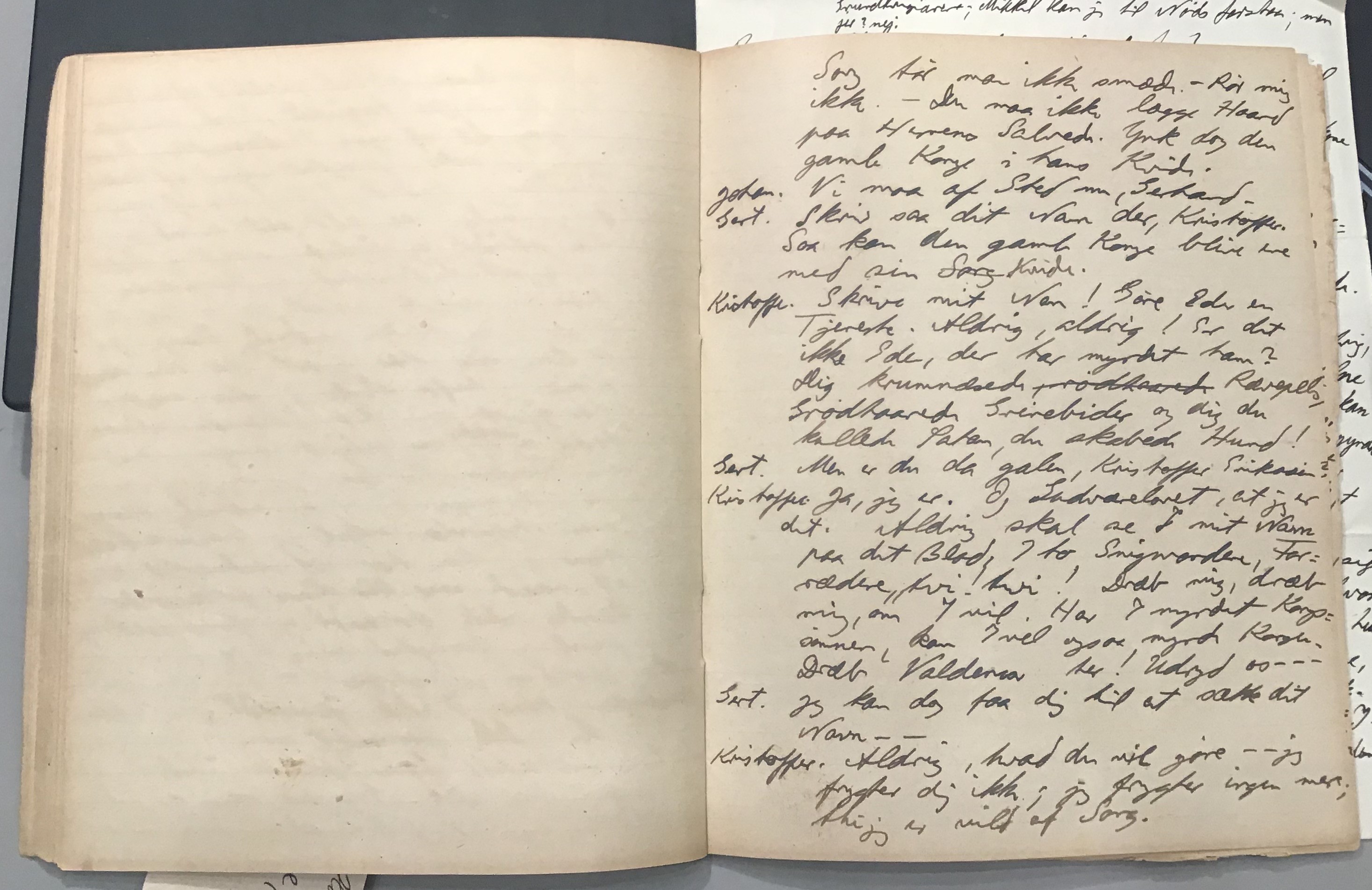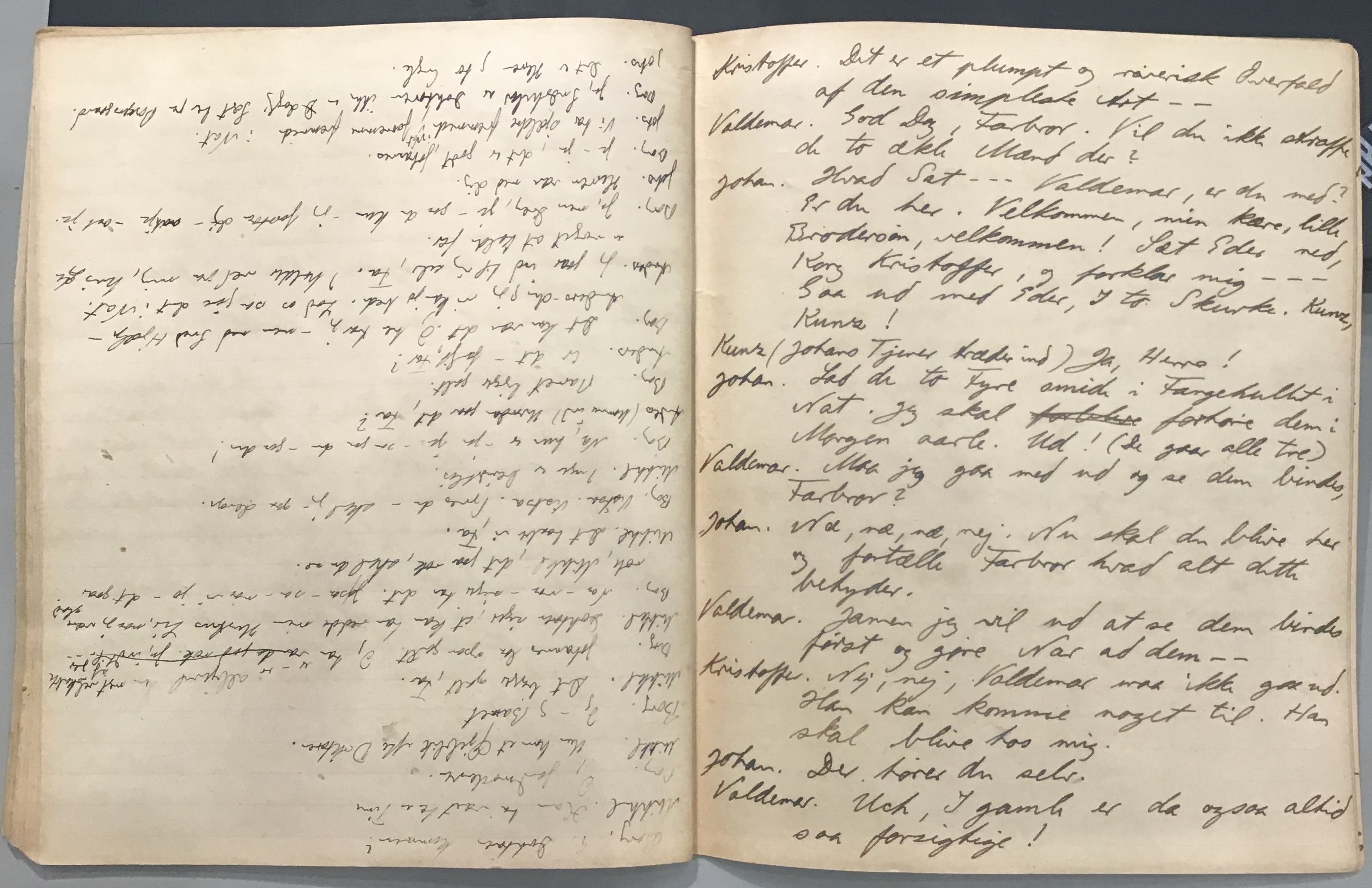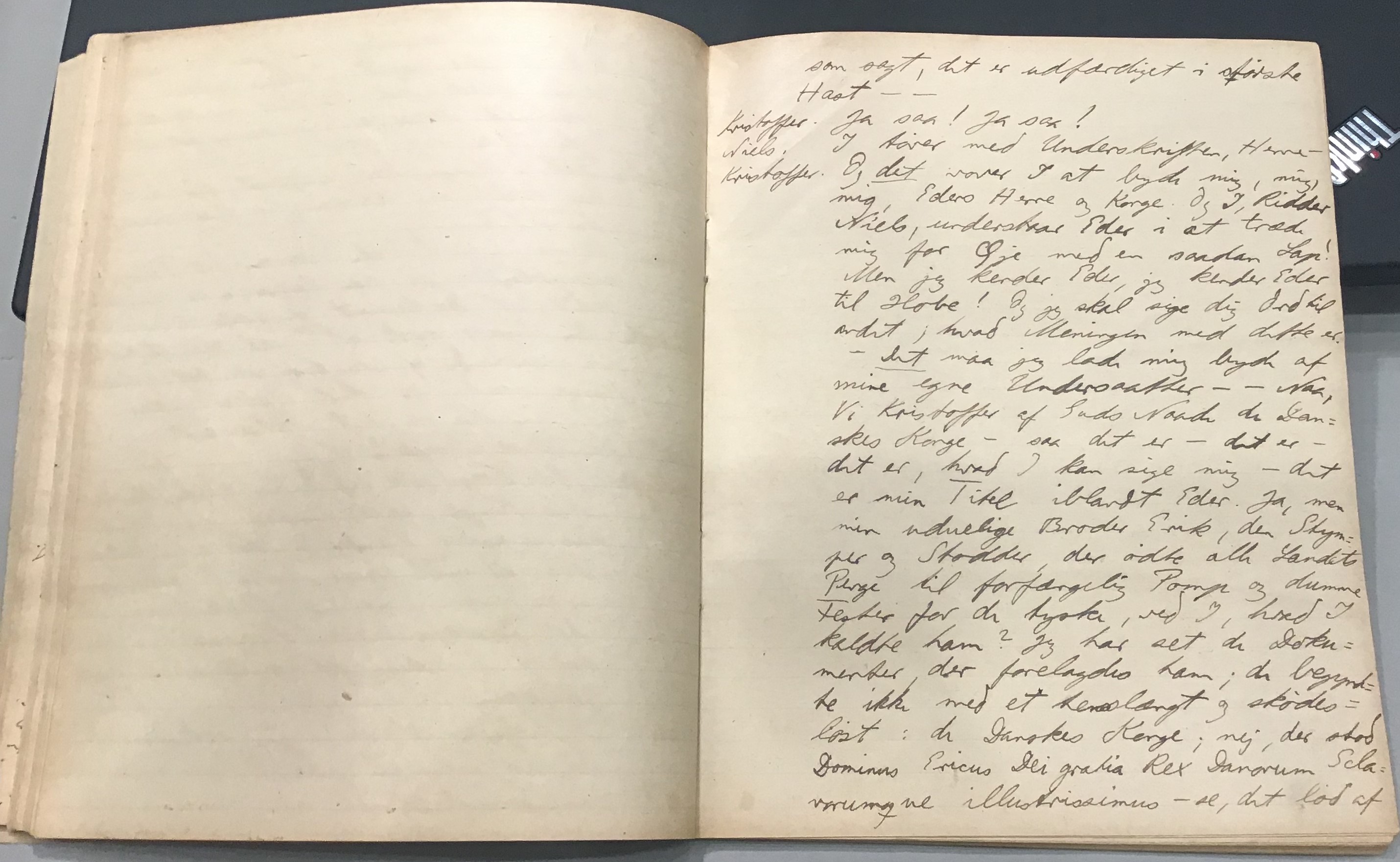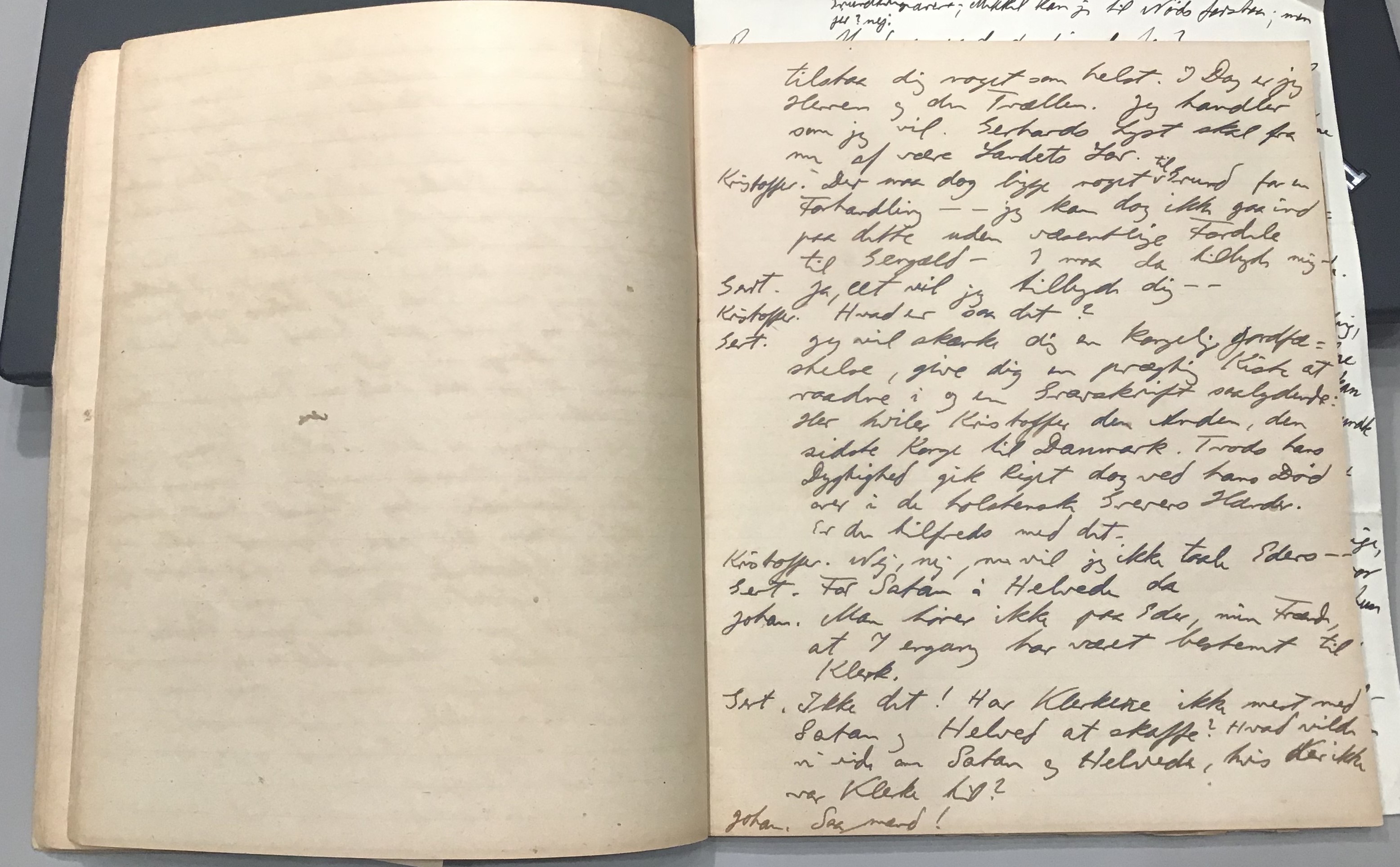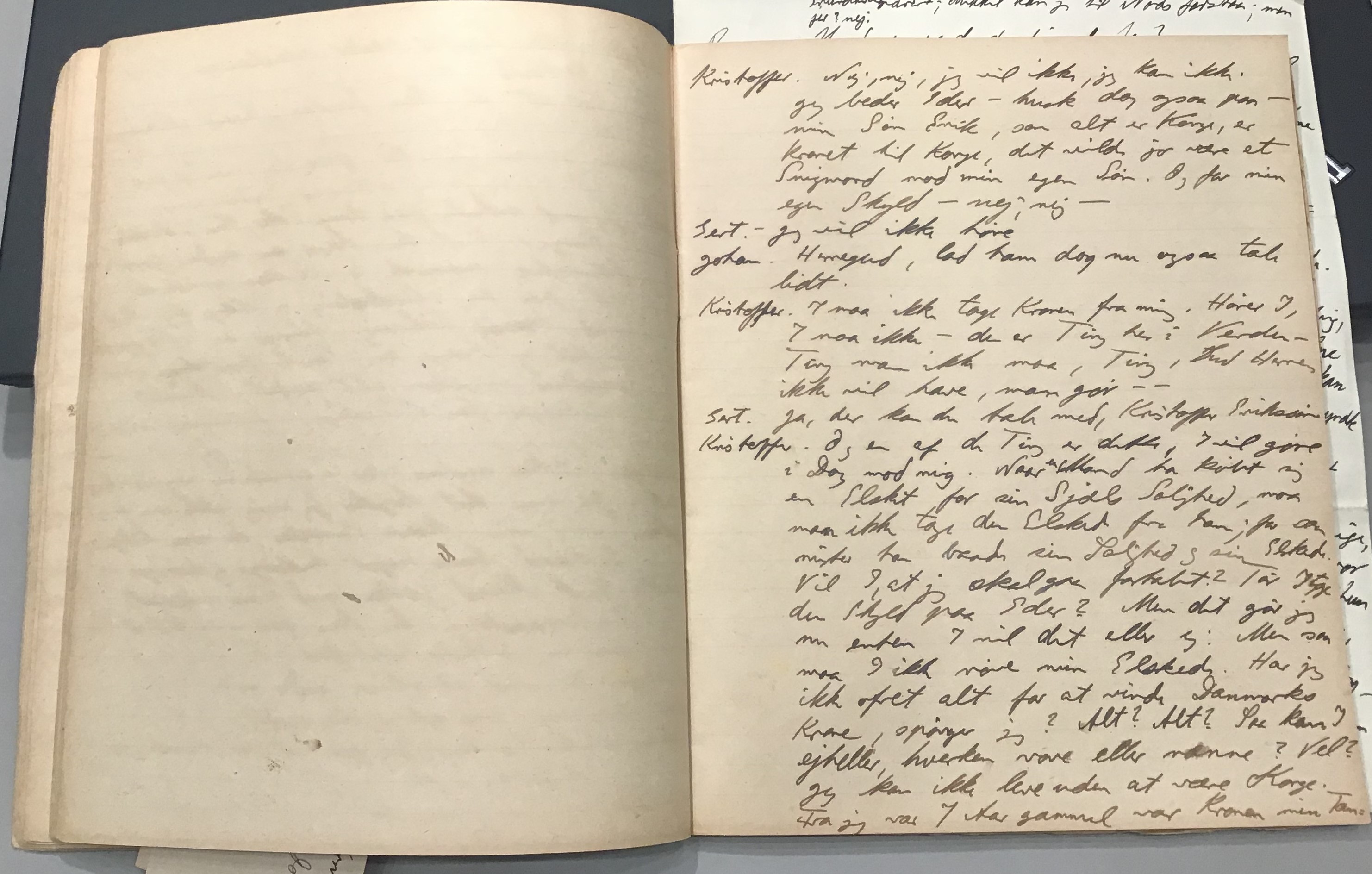 Kristoffer blev skrevet i 1918 eller 1919, det første eller andet år, Kaj Munk var student, men flere år senere, kort efter, at han havde begyndt sin præstegerning i Vedersø og var så fattig, at han måtte være sparsom med sit papirforbrug, skrev han det allerførste udkast til skuespillet Ordet på manuskriptets bagsider. Han genfandt det i begyndelsen af 1940, og da han var blevet bedt om at skrive en enakter, bestemte han sig for at korte de oprindelige to akter ned til en eneste. Resultatet blev skuespillet Atterdag (1940). Kilden (to håndskrevne hæfter, hvor også et håndskrevet udkast til skuespillet, Ordet, er skrevet på hver anden side) findes i Hans Brix's arkiv på Det kgl. Bibliotek. Diverse små bogmærker med kommentarer kommer i den rækkefølge, de er anbragt i i hæfterne. Disse er ikke transskriberet.