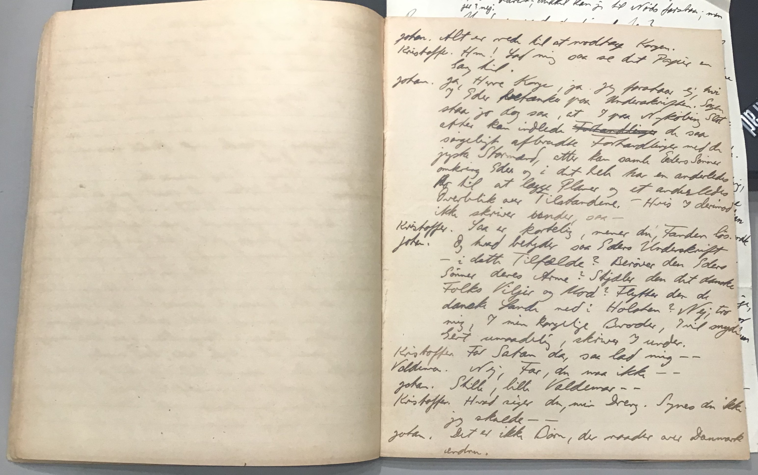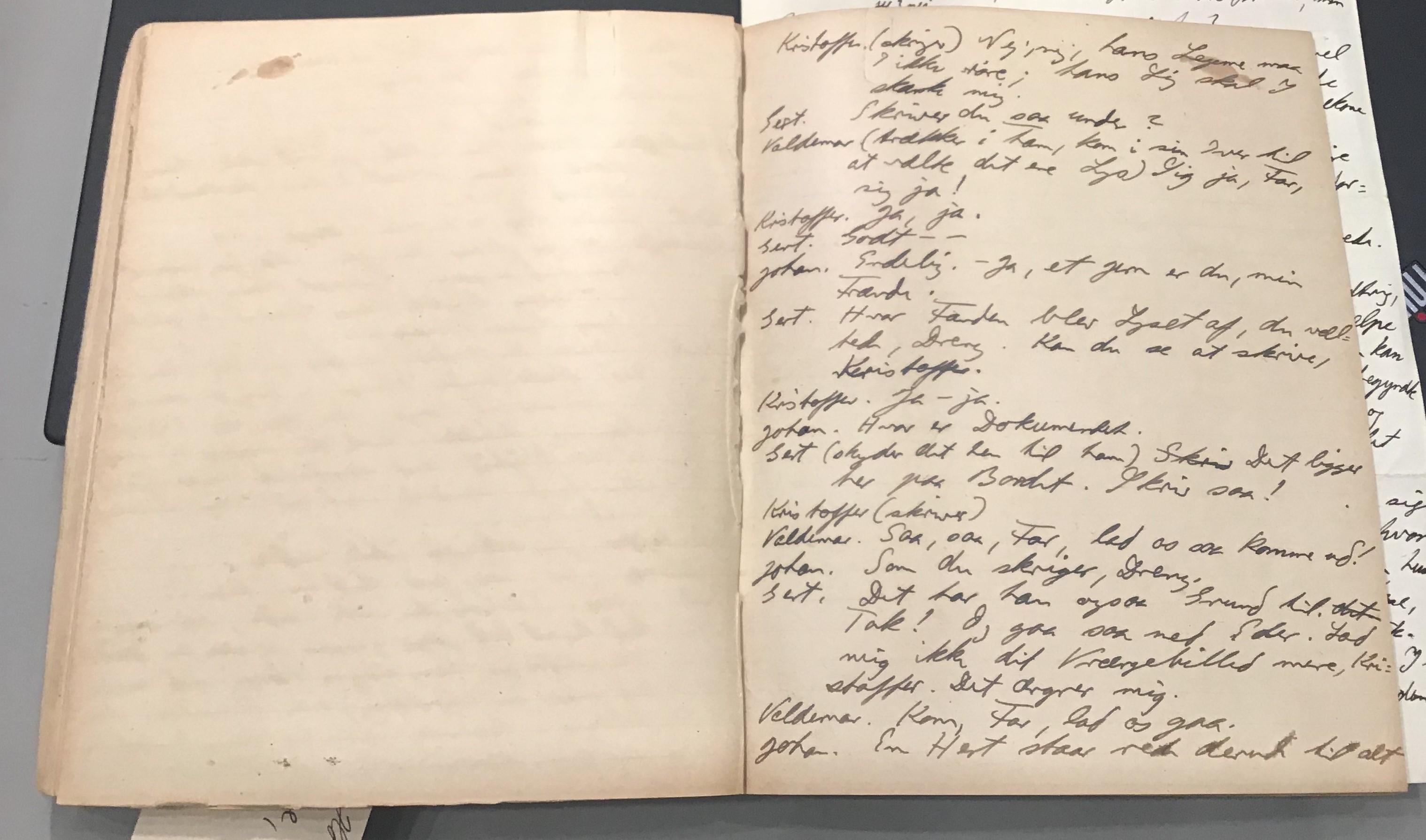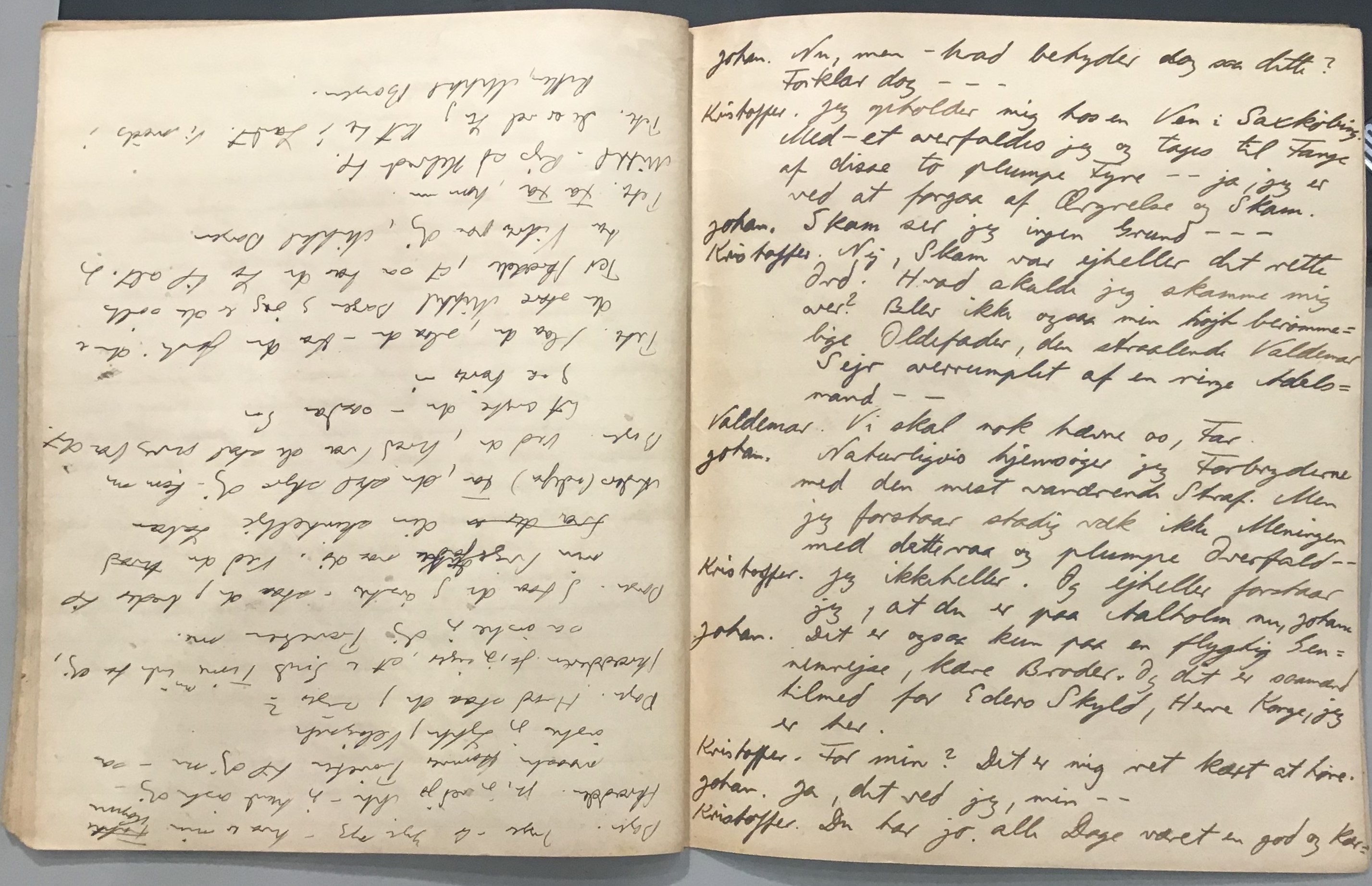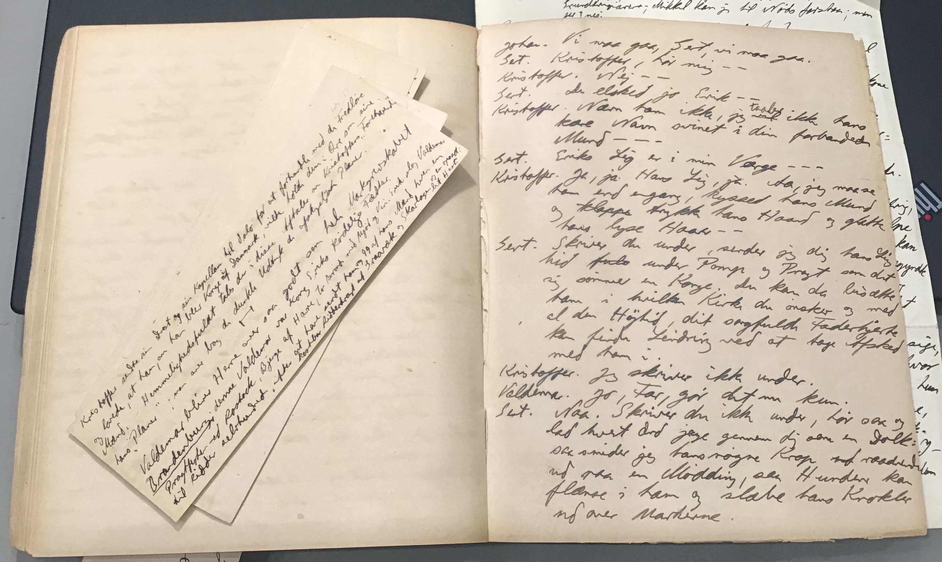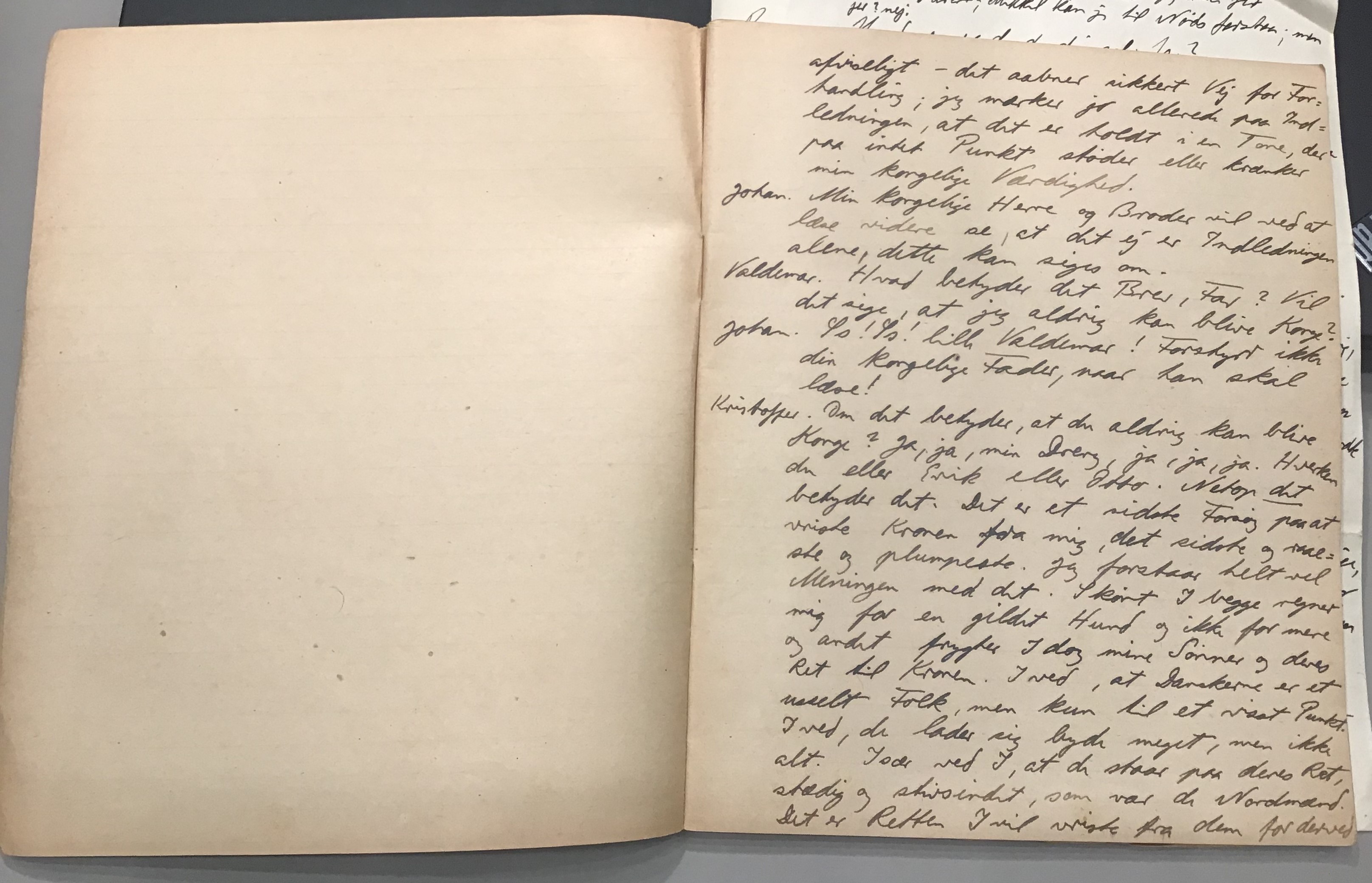 Kristoffer blev skrevet i 1918 eller 1919, det første eller andet år, Kaj Munk var student, men flere år senere, kort efter, at han havde begyndt sin præstegerning i Vedersø og var så fattig, at han måtte være sparsom med sit papirforbrug, skrev han det allerførste udkast til skuespillet Ordet på manuskriptets bagsider. Han genfandt det i begyndelsen af 1940, og da han var blevet bedt om at skrive en enakter, bestemte han sig for at korte de oprindelige to akter ned til en eneste. Resultatet blev skuespillet Atterdag (1940). Kilden (to håndskrevne hæfter, hvor også et håndskrevet udkast til skuespillet, Ordet, er skrevet på hver anden side) findes i Hans Brix's arkiv på Det kgl. Bibliotek. Diverse små bogmærker med kommentarer kommer i den rækkefølge, de er anbragt i i hæfterne. Disse er ikke transskriberet.