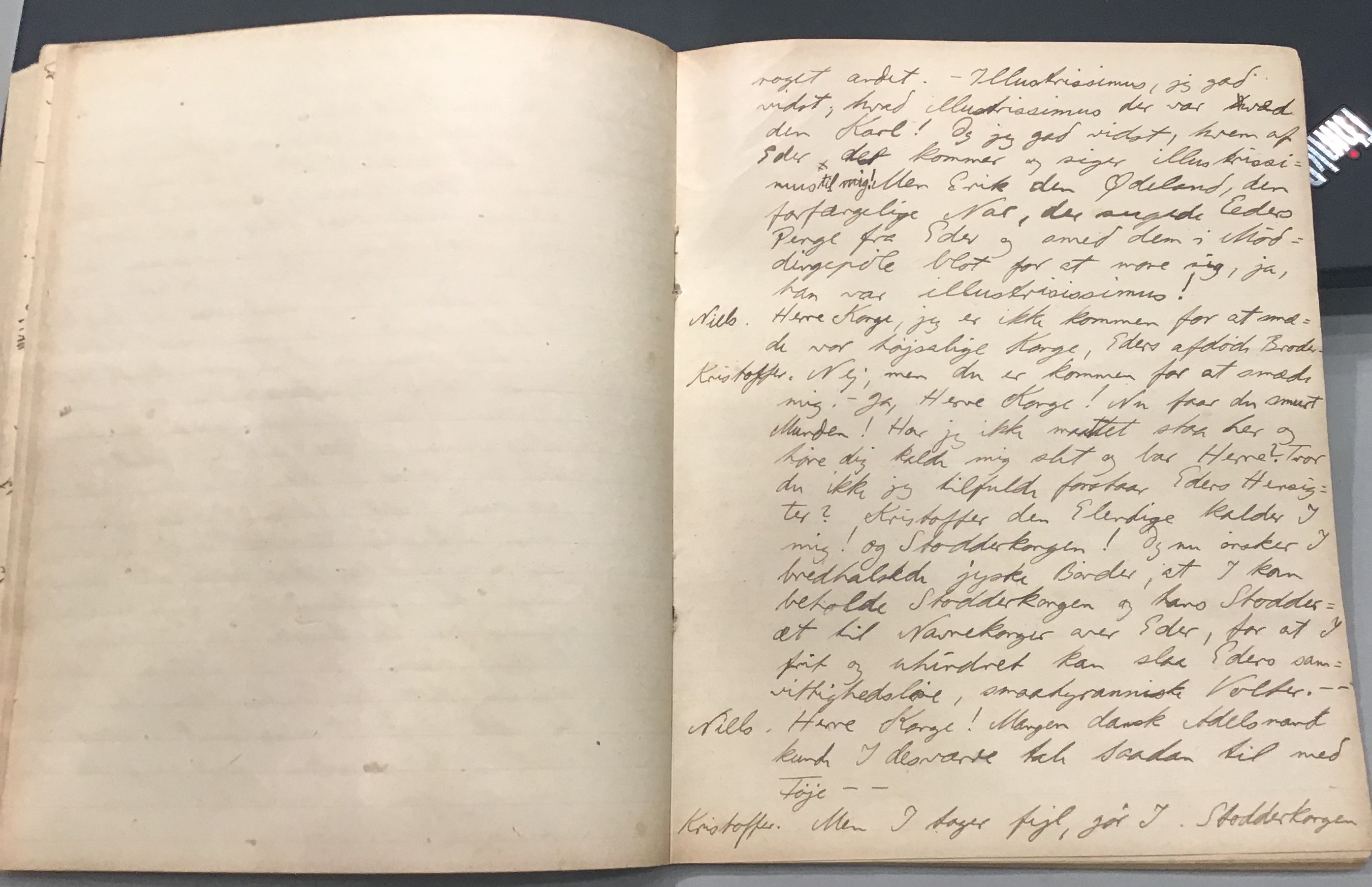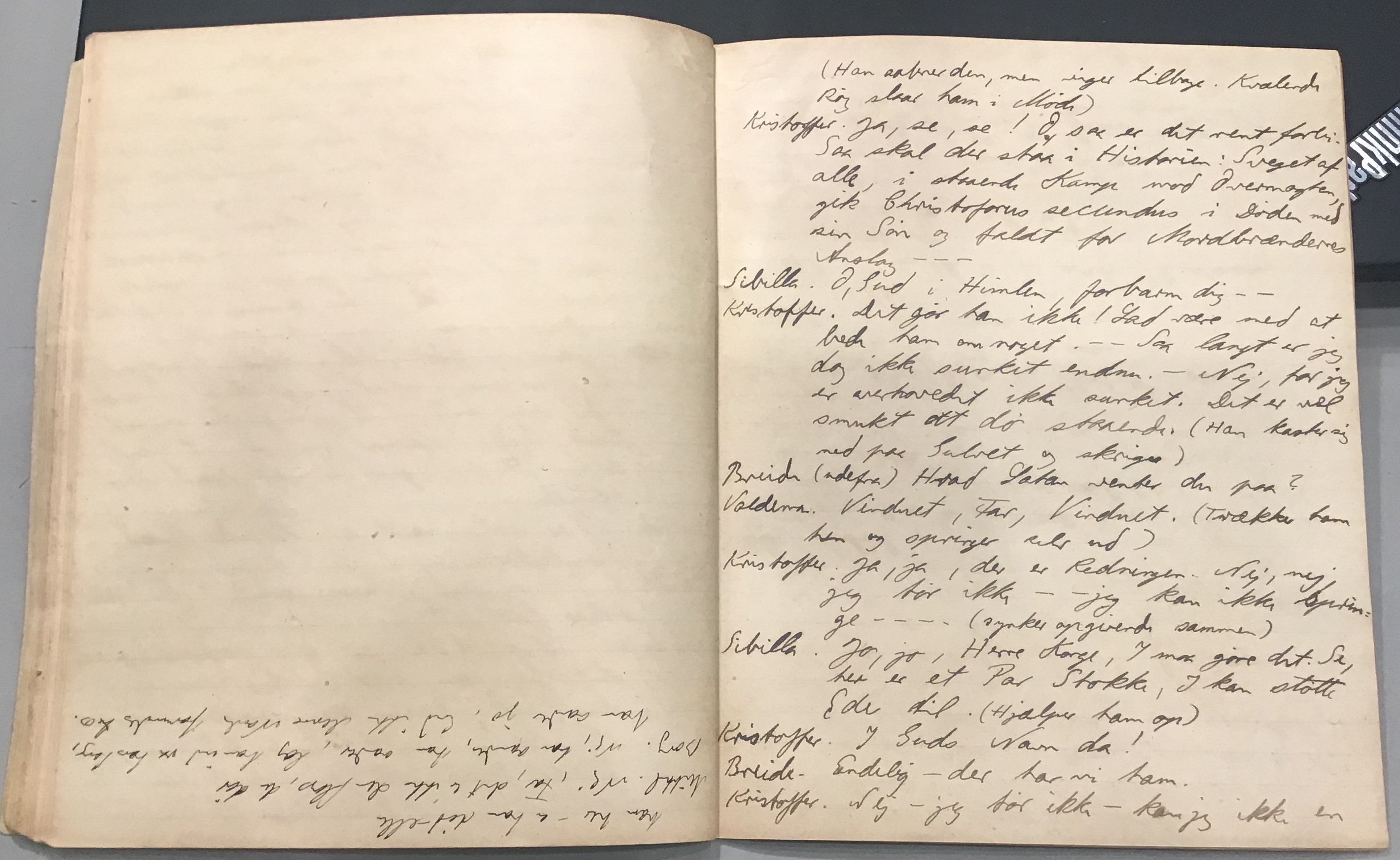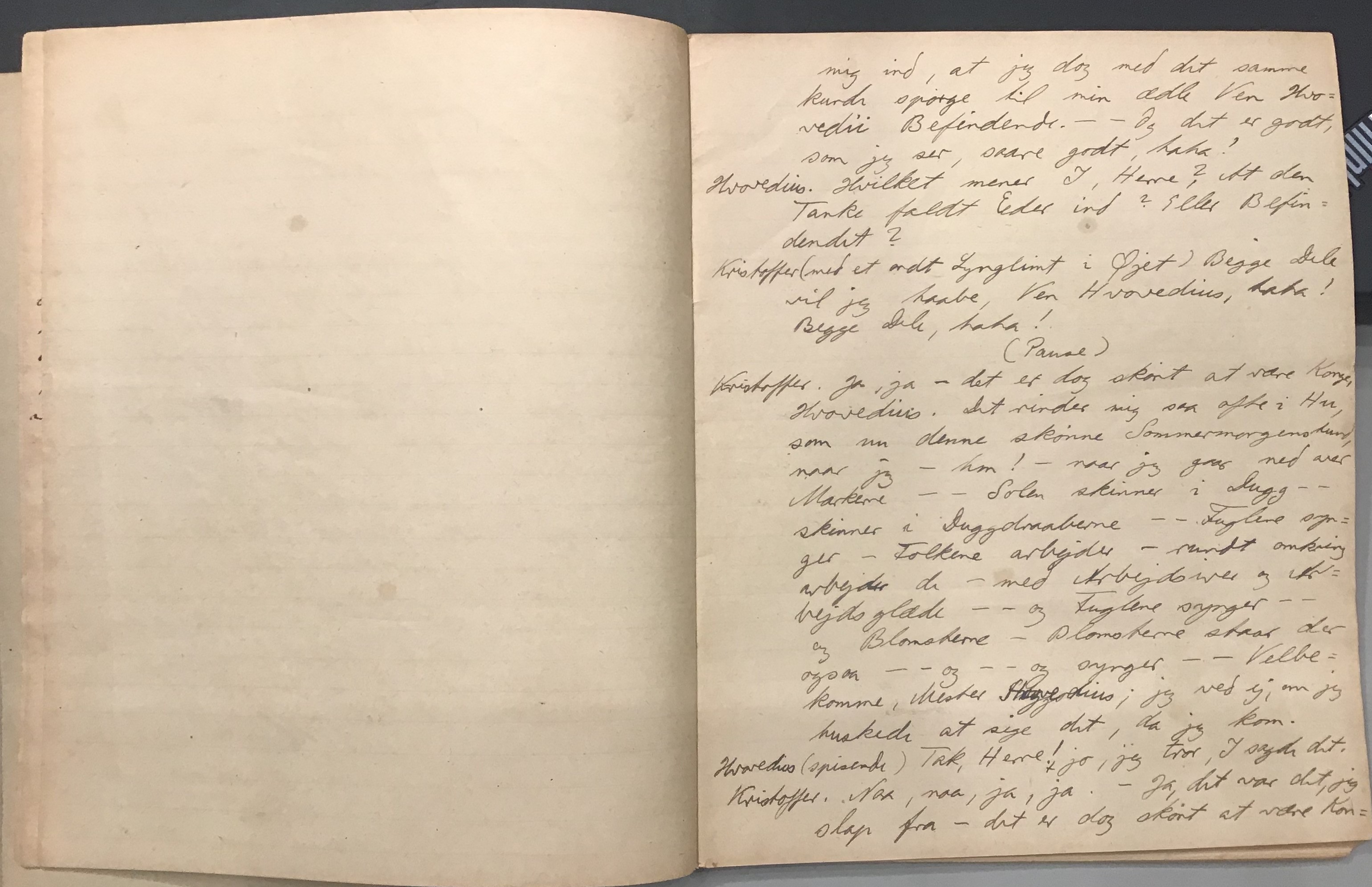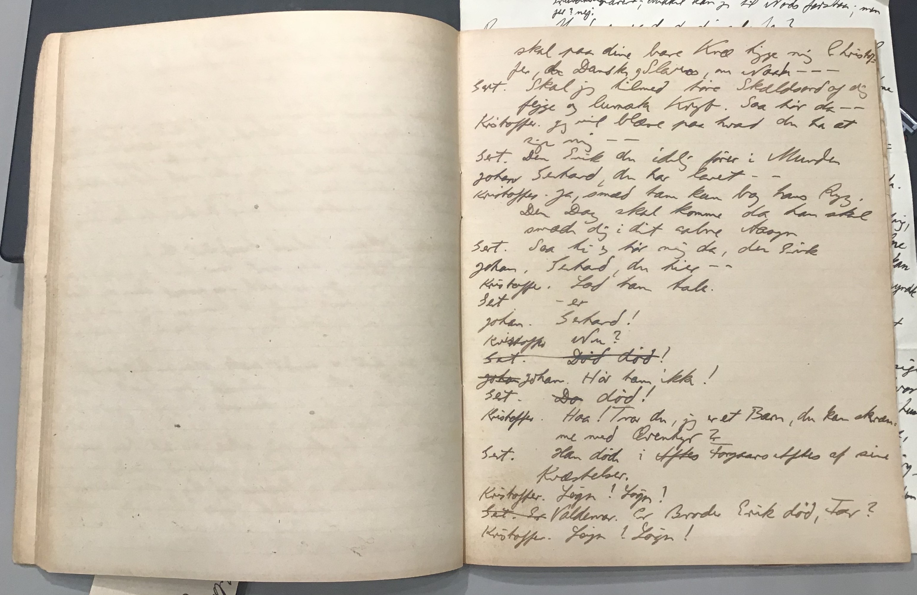 Kristoffer blev skrevet i 1918 eller 1919, det første eller andet år, Kaj Munk var student, men flere år senere, kort efter, at han havde begyndt sin præstegerning i Vedersø og var så fattig, at han måtte være sparsom med sit papirforbrug, skrev han det allerførste udkast til skuespillet Ordet på manuskriptets bagsider. Han genfandt det i begyndelsen af 1940, og da han var blevet bedt om at skrive en enakter, bestemte han sig for at korte de oprindelige to akter ned til en eneste. Resultatet blev skuespillet Atterdag (1940). Kilden (to håndskrevne hæfter, hvor også et håndskrevet udkast til skuespillet, Ordet, er skrevet på hver anden side) findes i Hans Brix's arkiv på Det kgl. Bibliotek. Diverse små bogmærker med kommentarer kommer i den rækkefølge, de er anbragt i i hæfterne. Disse er ikke transskriberet.