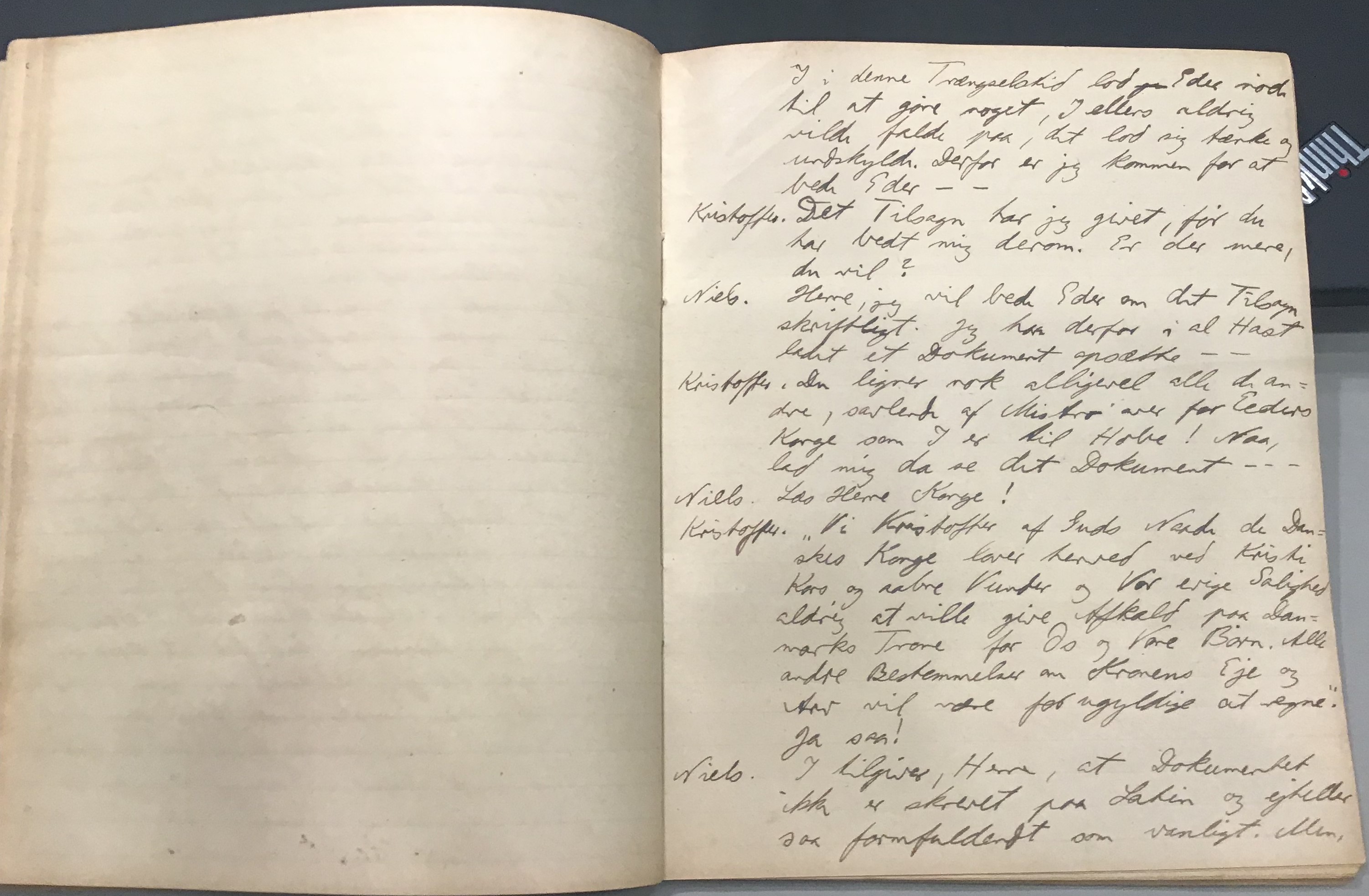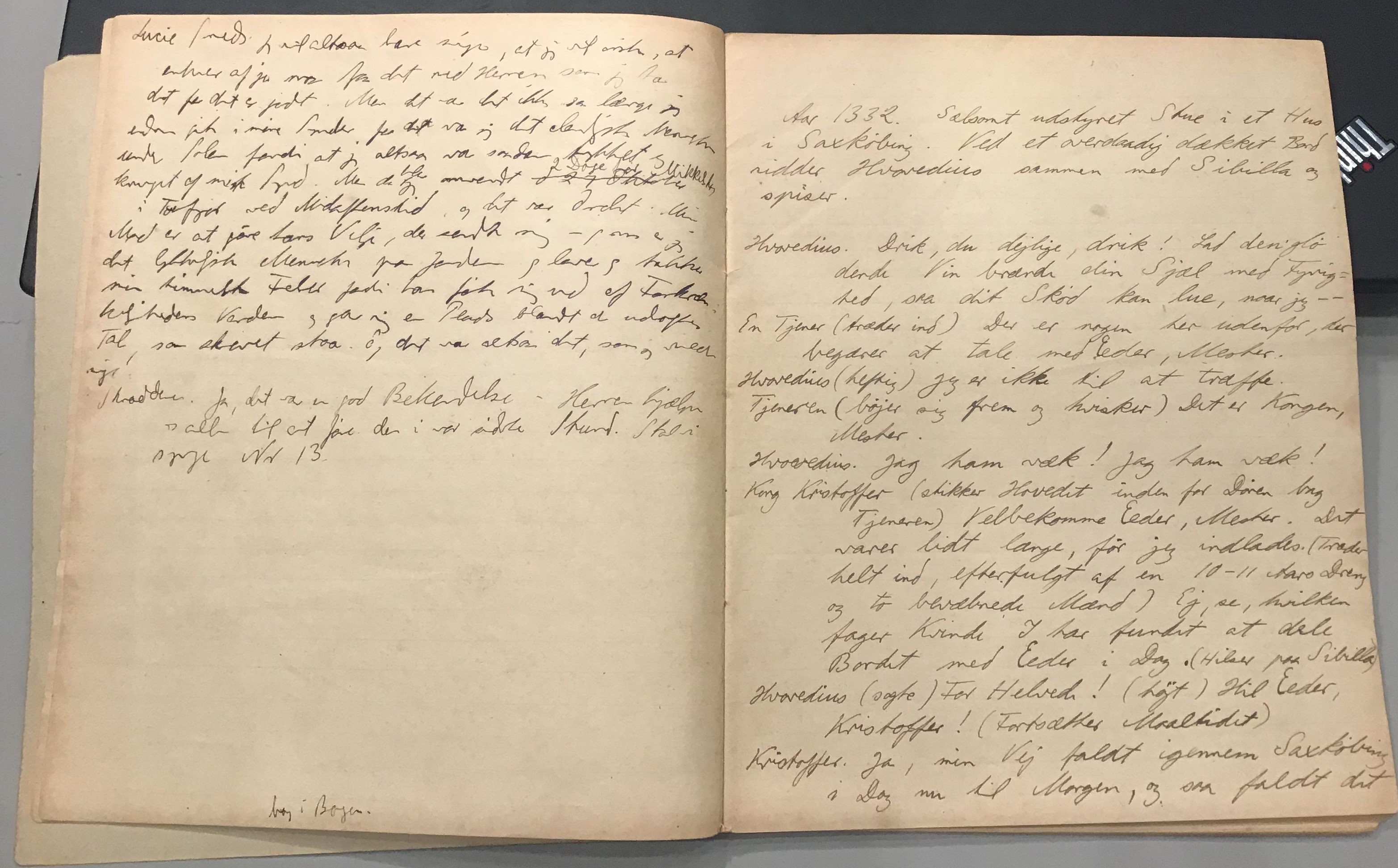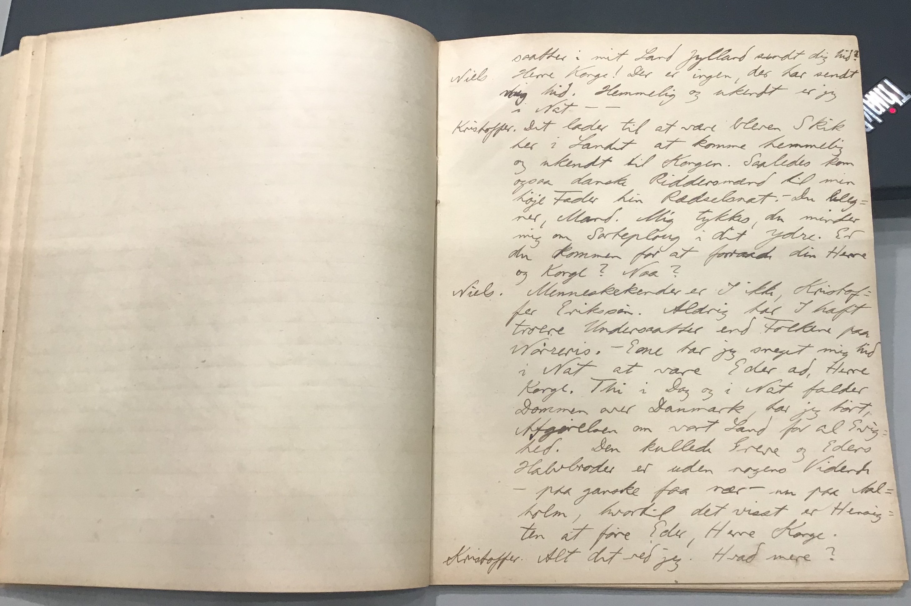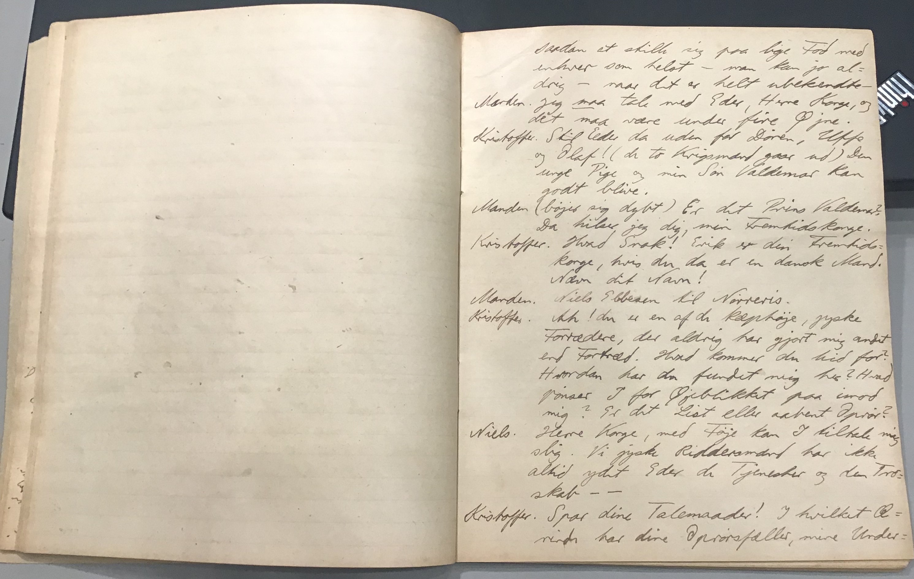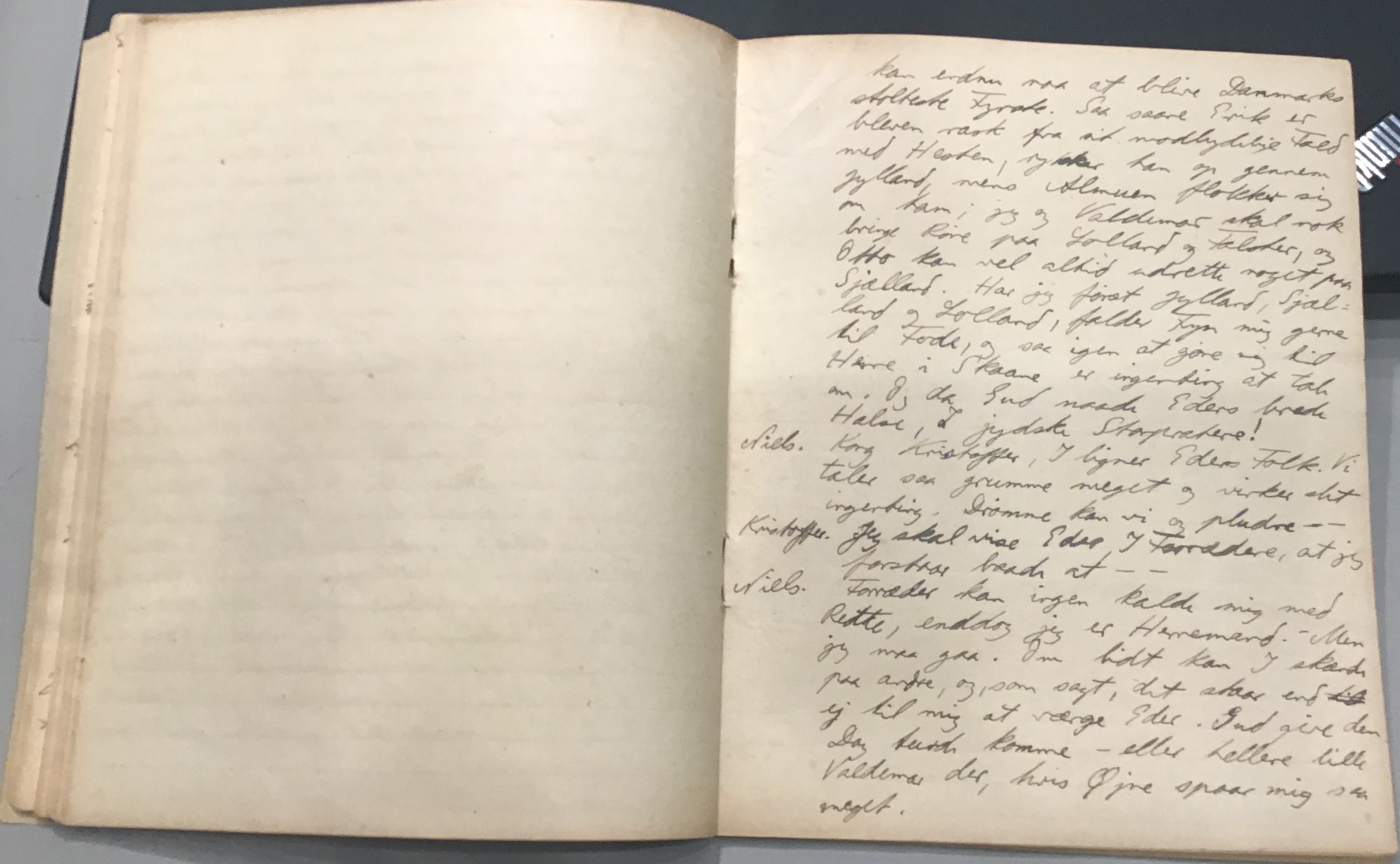 Kristoffer blev skrevet i 1918 eller 1919, det første eller andet år, Kaj Munk var student, men flere år senere, kort efter, at han havde begyndt sin præstegerning i Vedersø og var så fattig, at han måtte være sparsom med sit papirforbrug, skrev han det allerførste udkast til skuespillet Ordet på manuskriptets bagsider. Han genfandt det i begyndelsen af 1940, og da han var blevet bedt om at skrive en enakter, bestemte han sig for at korte de oprindelige to akter ned til en eneste. Resultatet blev skuespillet Atterdag (1940). Kilden (to håndskrevne hæfter, hvor også et håndskrevet udkast til skuespillet, Ordet, er skrevet på hver anden side) findes i Hans Brix's arkiv på Det kgl. Bibliotek. Diverse små bogmærker med kommentarer kommer i den rækkefølge, de er anbragt i i hæfterne. Disse er ikke transskriberet.