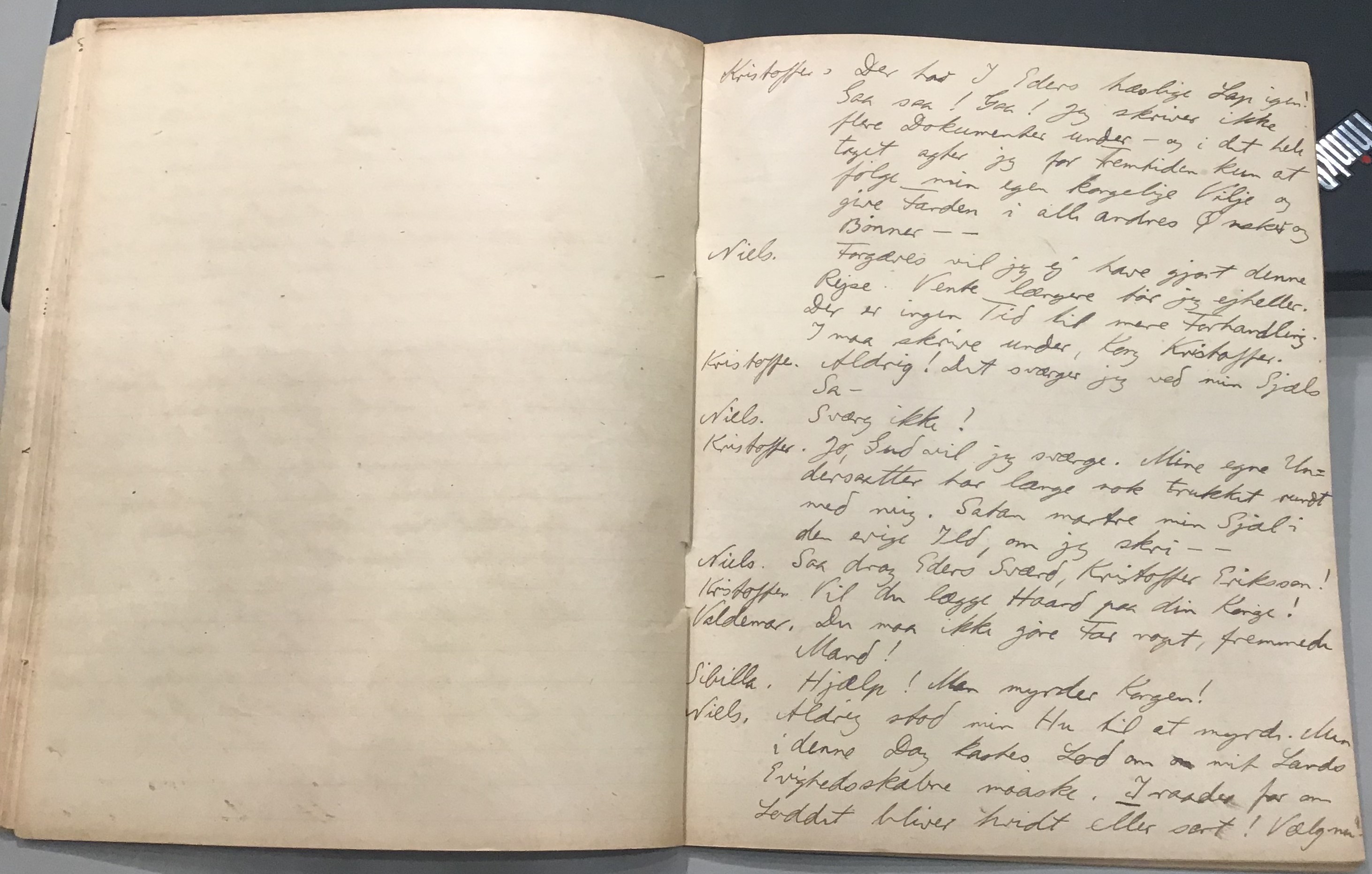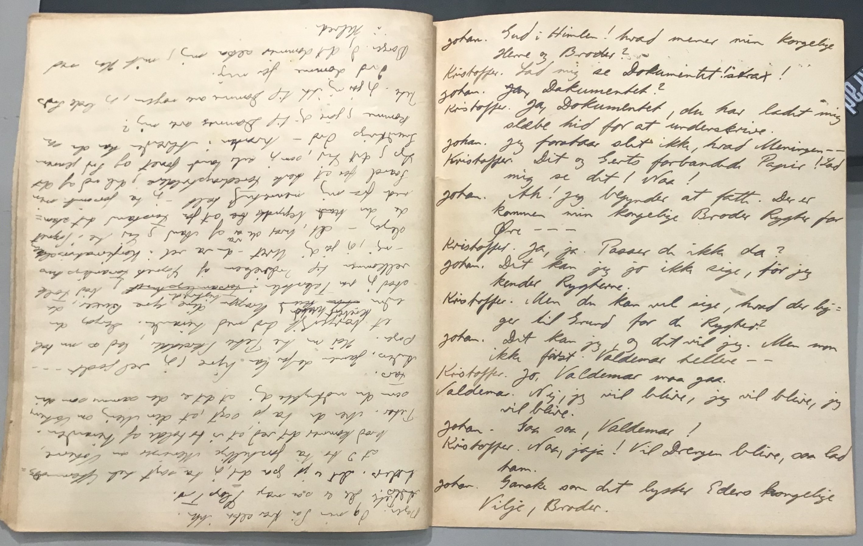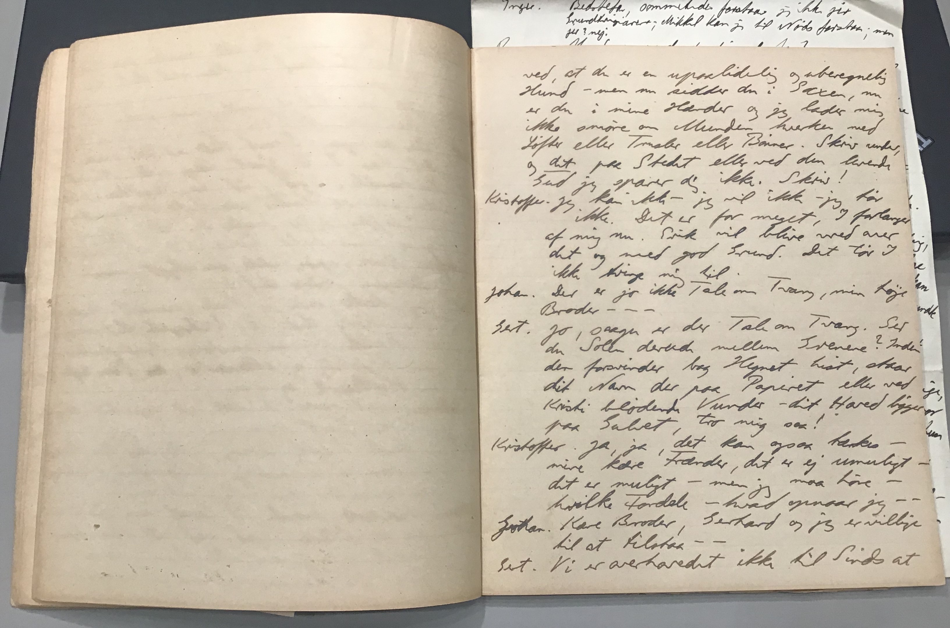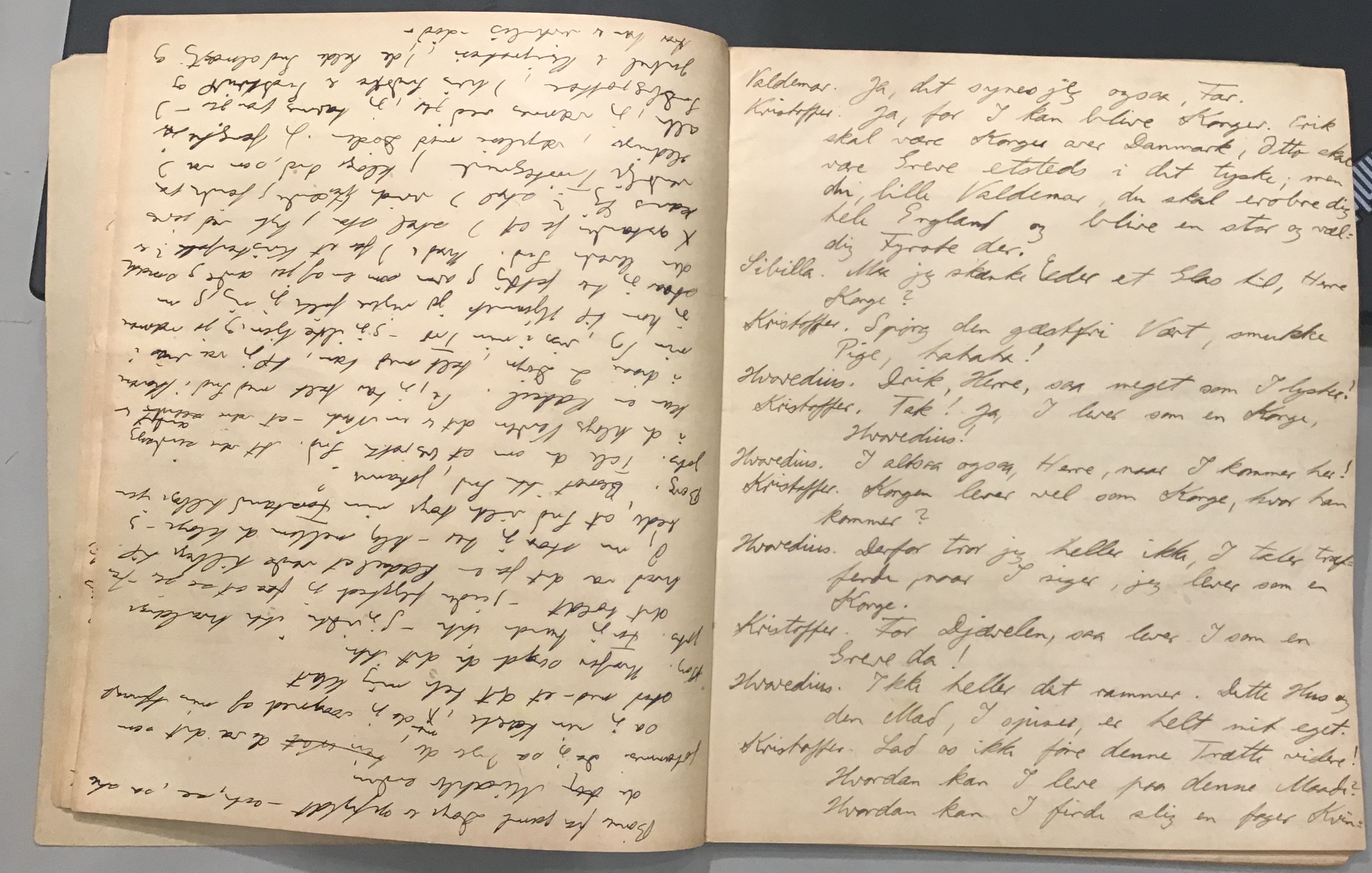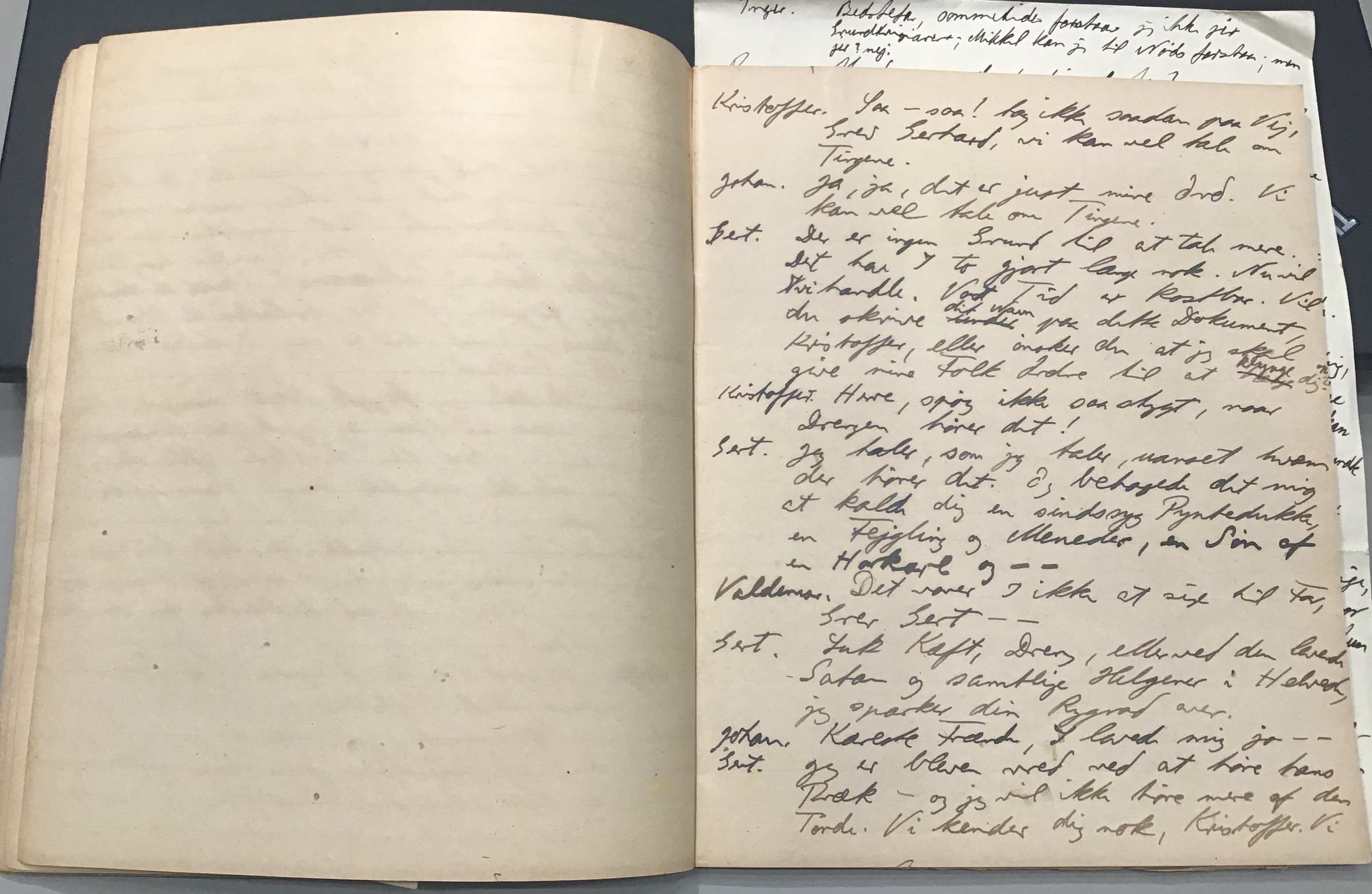 Kristoffer blev skrevet i 1918 eller 1919, det første eller andet år, Kaj Munk var student, men flere år senere, kort efter, at han havde begyndt sin præstegerning i Vedersø og var så fattig, at han måtte være sparsom med sit papirforbrug, skrev han det allerførste udkast til skuespillet Ordet på manuskriptets bagsider. Han genfandt det i begyndelsen af 1940, og da han var blevet bedt om at skrive en enakter, bestemte han sig for at korte de oprindelige to akter ned til en eneste. Resultatet blev skuespillet Atterdag (1940). Kilden (to håndskrevne hæfter, hvor også et håndskrevet udkast til skuespillet, Ordet, er skrevet på hver anden side) findes i Hans Brix's arkiv på Det kgl. Bibliotek. Diverse små bogmærker med kommentarer kommer i den rækkefølge, de er anbragt i i hæfterne. Disse er ikke transskriberet.